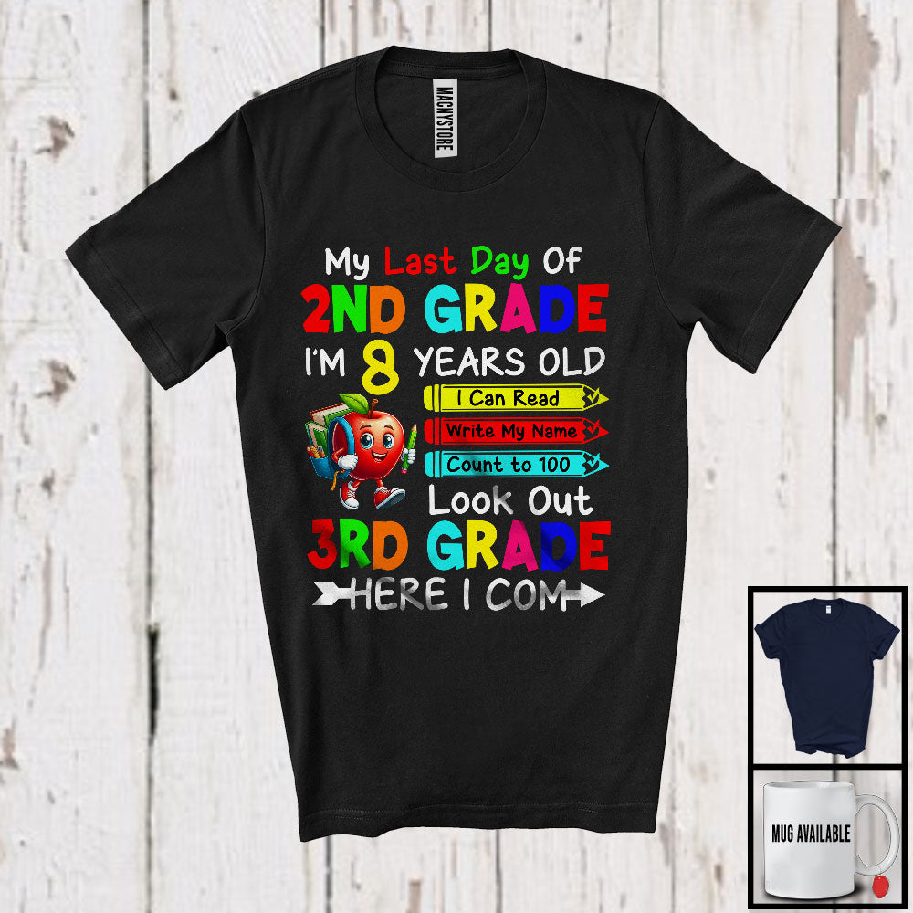 My Last Day 2nd Grade 7 Years Old, Colorful Last Day School Summer Vacation, Student Group T-Shirt. This cotton t-shirt is a durable staple product with a classic fit. One of the most popular items, it has a relaxed style made for everyday and casual wear.