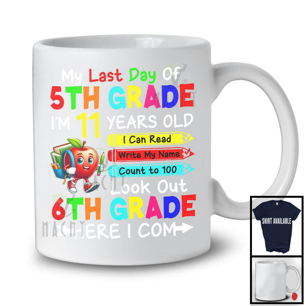 My Last Day 5th Grade 7 Years Old, Colorful Last Day School Summer Vacation, Student Group T-Shirt. This cotton t-shirt is a durable staple product with a classic fit. One of the most popular items, it has a relaxed style made for everyday and casual wear.