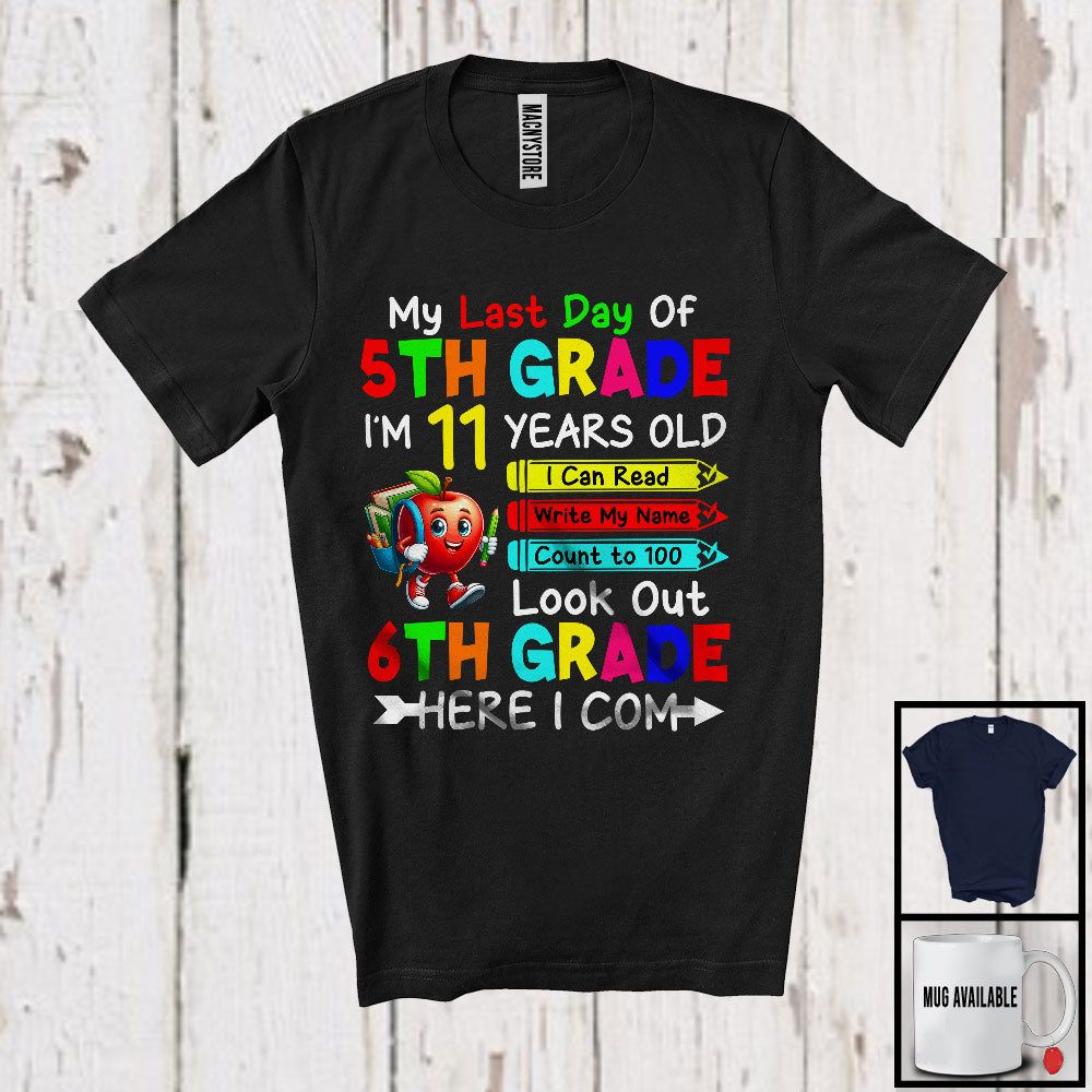 Every product is unique, just like you. If you're looking for a product that fits the mold of your life, the My Last Day 5th Grade 7 Years Old, Colorful Last Day School Summer Vacation, Student Group T-Shirt is for you.