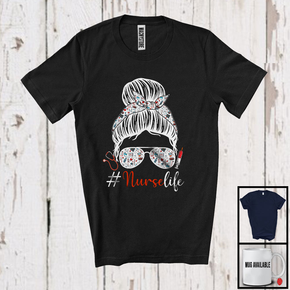 Nurse Life, Adorable Mother's Day Bun Hair Woman Nursing Lover, Matching Nurse Squad Group T-Shirt. This cotton t-shirt is a durable staple product with a classic fit. One of the most popular items, it has a relaxed style made for everyday and casual wear.