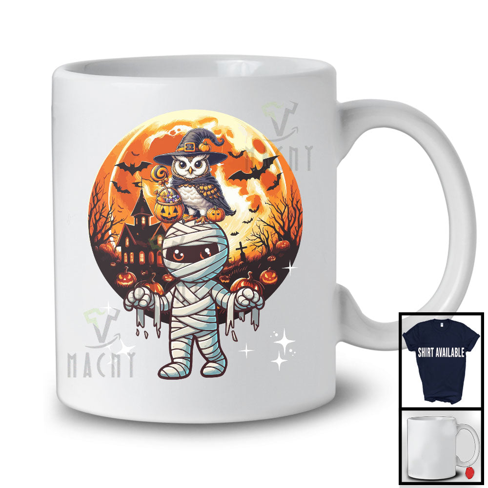 new MacnyStore - Owl Witch Riding Mummy; Amazing Halloween Moon Bird; Boys Girls Family Group T-Shirt – Macnystore
