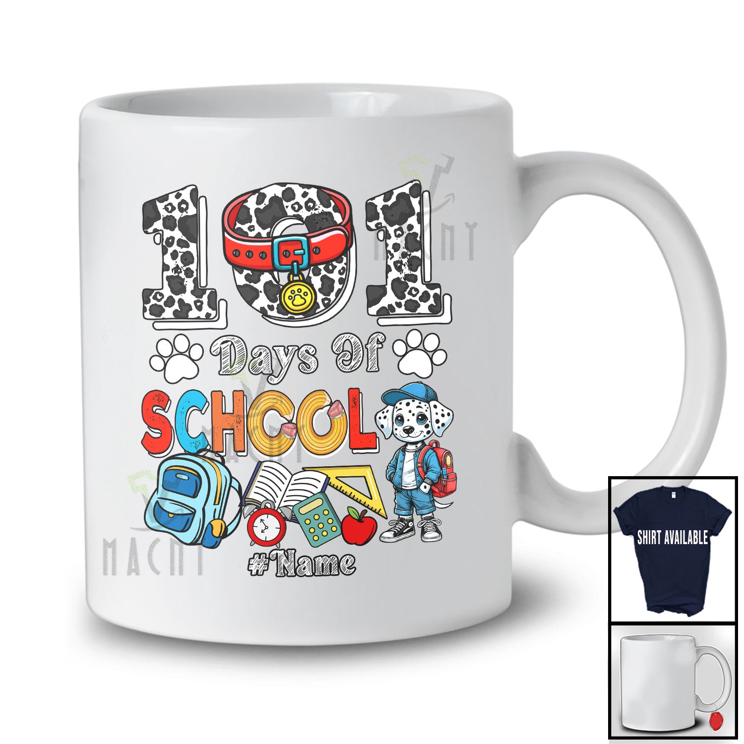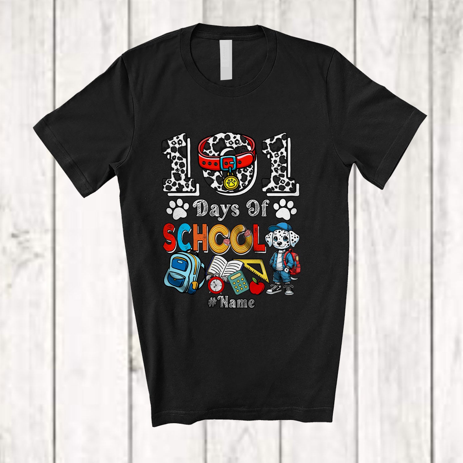 Personalized 101 Days of School; Lovely 100th Day Dalmatian; Custom Name Boy Student Teacher T-Shirt. This cotton t-shirt is a durable staple product with a classic fit. One of the most popular items, it has a relaxed style made for everyday and casual wear.
