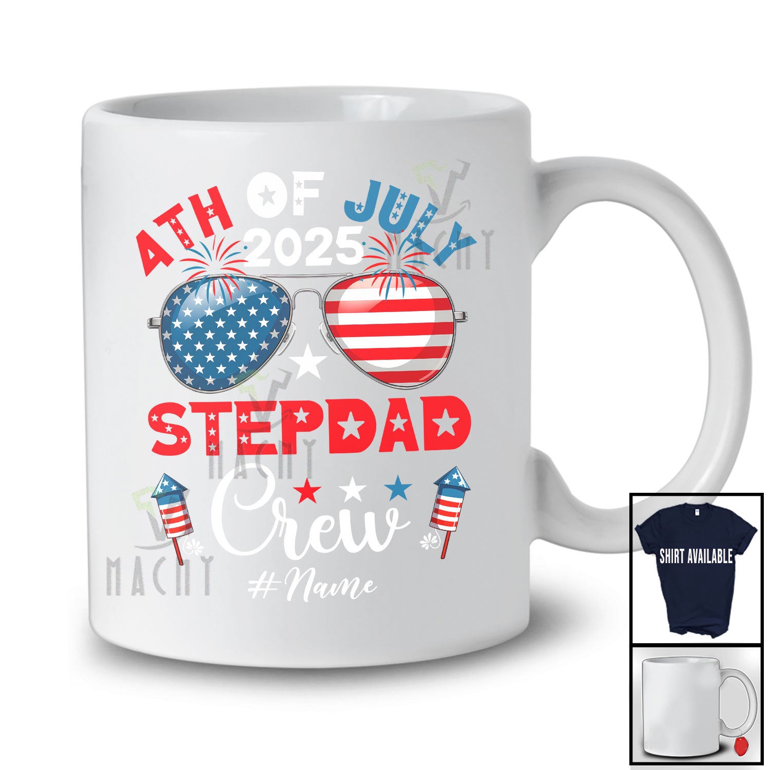 Personalized 4th of July 2025 Stepdad Crew; Proud US Flag Sunglasses; Custom Name Patriotic T-Shirt