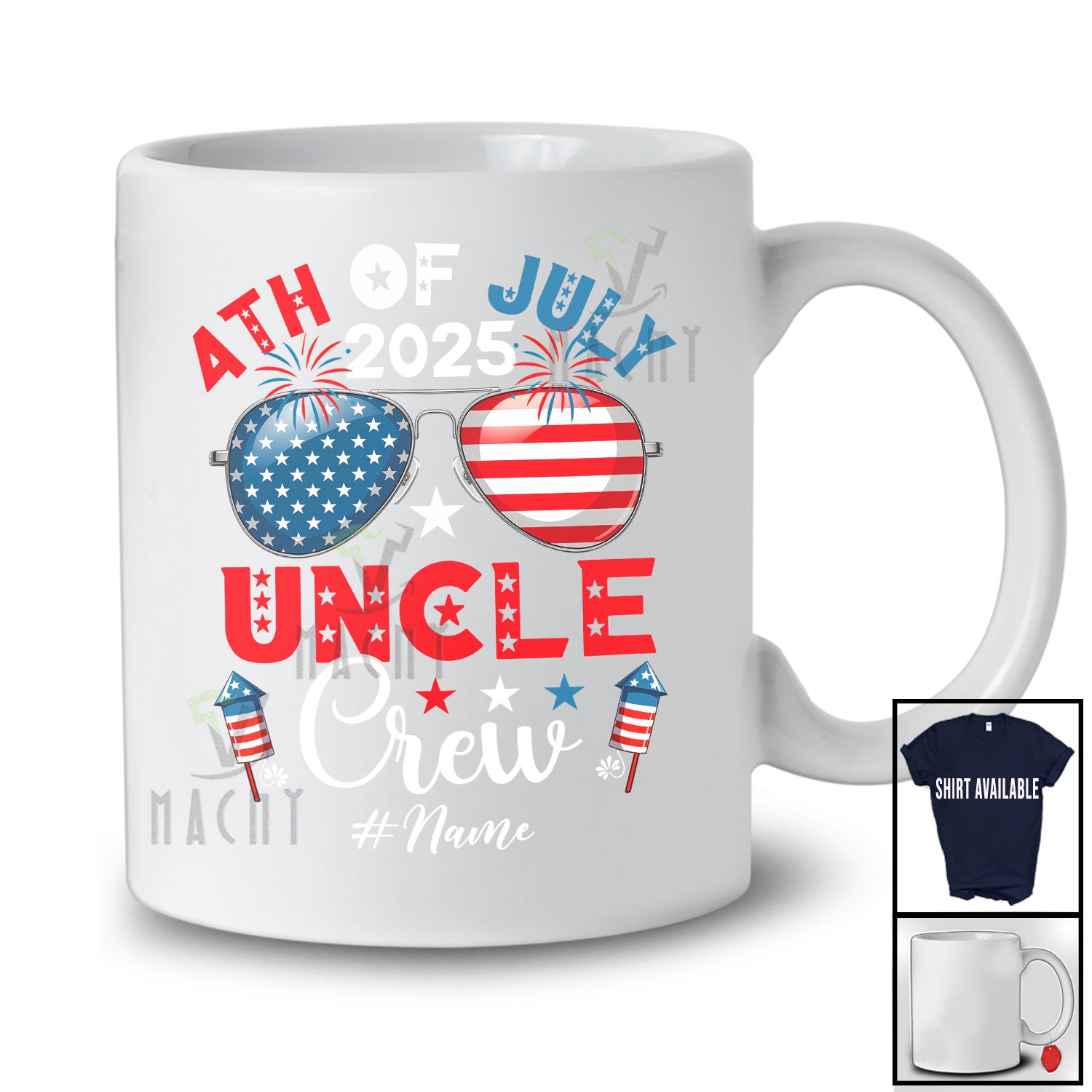 The Personalized 4th of July 2025 Uncle Crew; Proud US Flag Sunglasses; Custom Name Patriotic T-Shirt destined to impress, and priced at only $12.95, for a limited time.