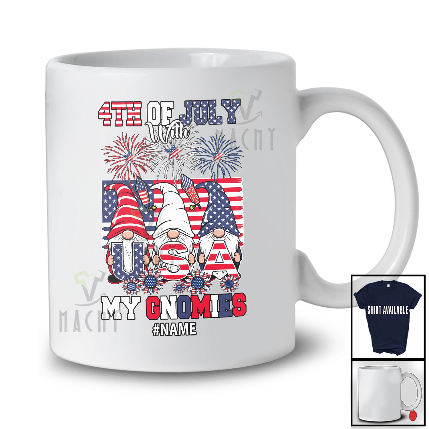 Personalized 4th Of July With My Gnomies; Cheerful Custom Name Patriotic; USA 3 Gnomes T-Shirt. This cotton t-shirt is a durable staple product with a classic fit. One of the most popular items, it has a relaxed style made for everyday and casual wear.