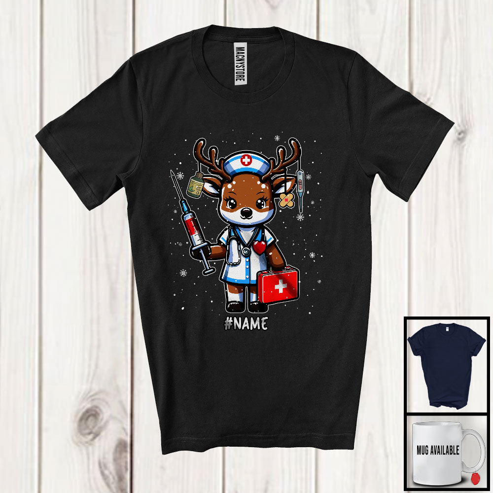new MacnyStore - Personalized Adorable Nurse Reindeer; Merry Christmas Custom Name Santa Reindeer T-Shirt – Macnystore