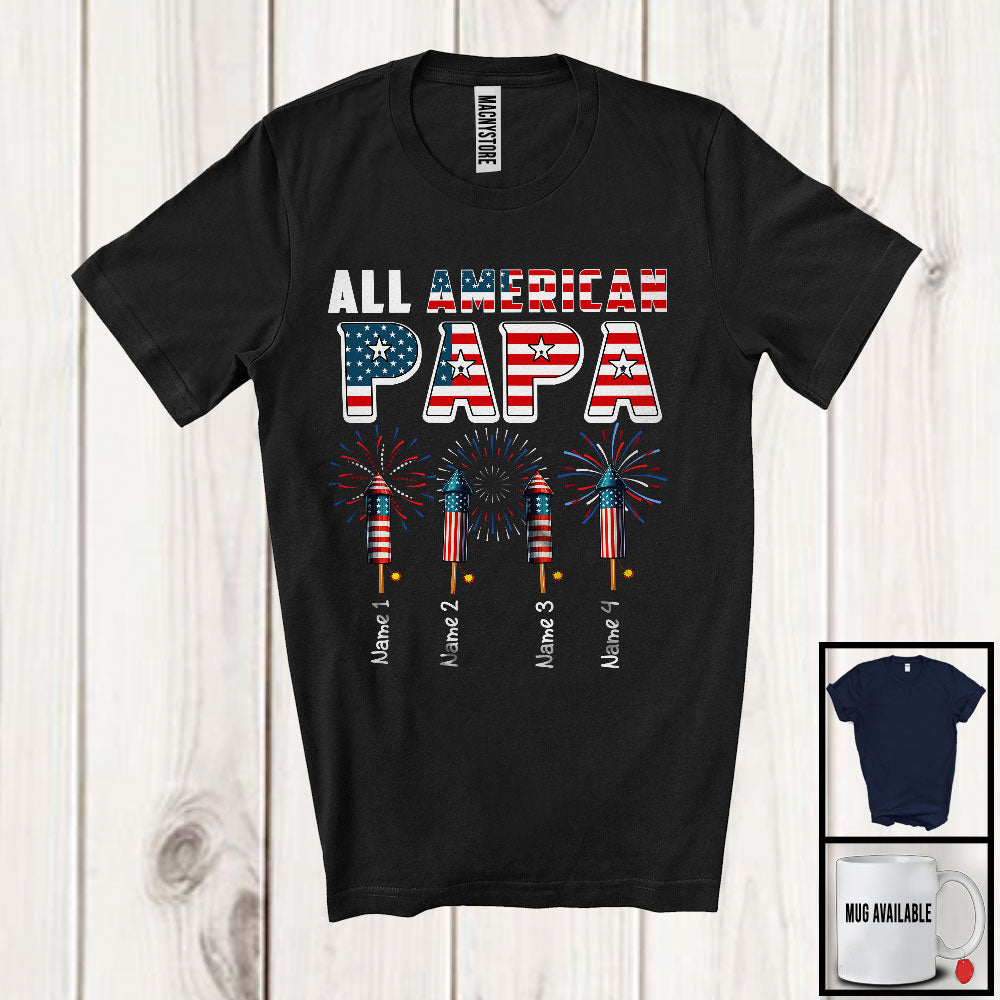 Personalized All American Papa, Awesome 4th Of July Patriotic Fireworks, Custom Name Family T-Shirt