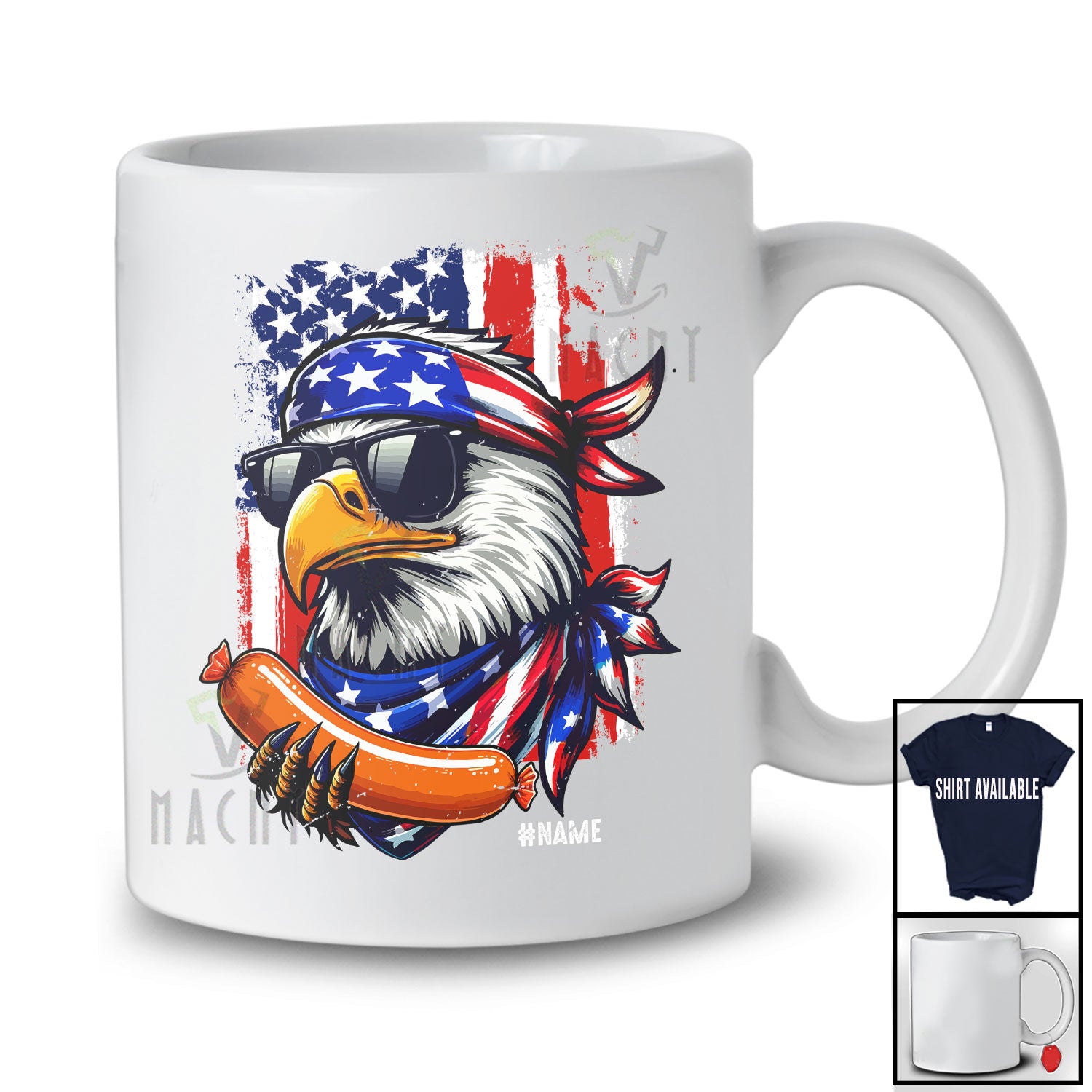 new MacnyStore - Personalized American Bald Eagle Eating Sausage; Humorous 4th of July Custom Name Patriotic T-Shirt – Macnystore