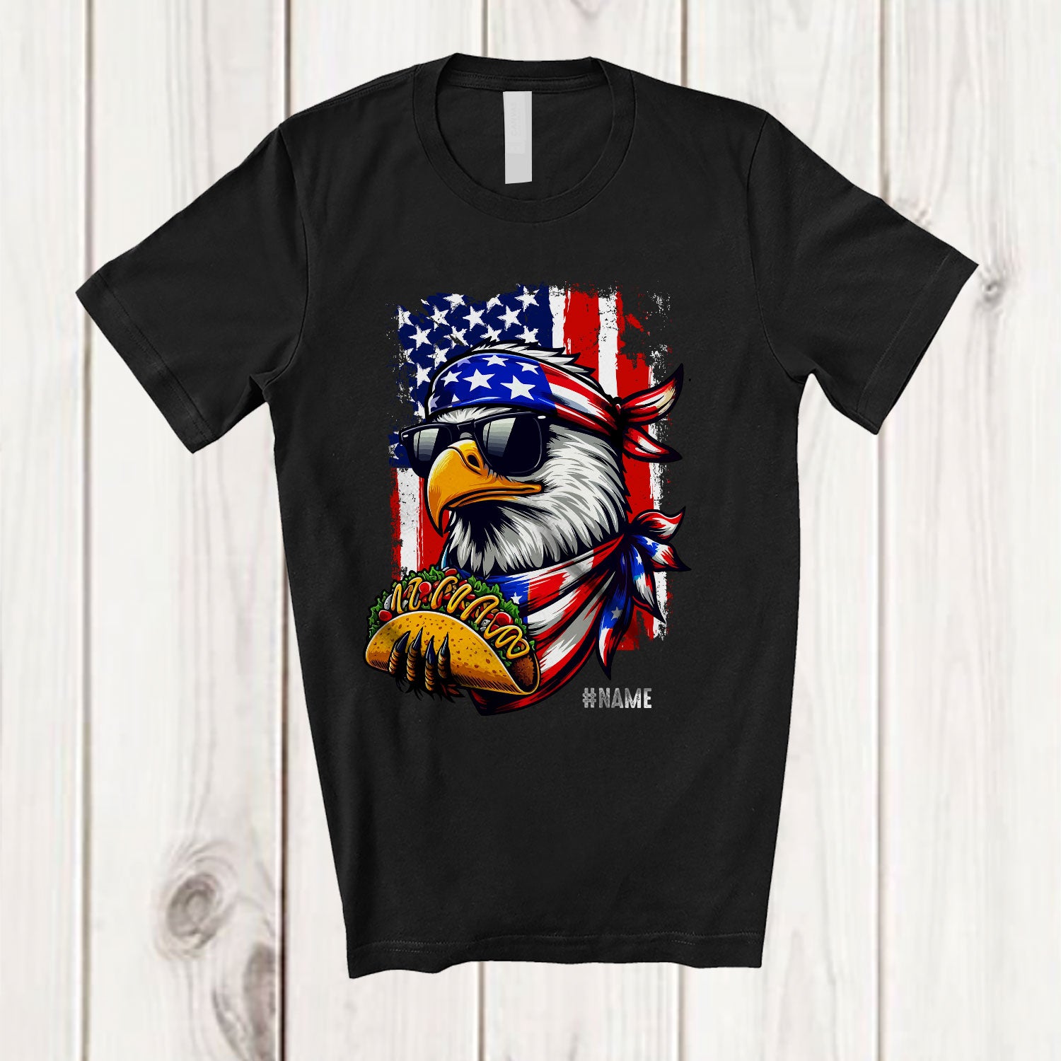 Personalized American Bald Eagle Eating Taco; Humorous 4th of July Custom Name Patriotic T-Shirt