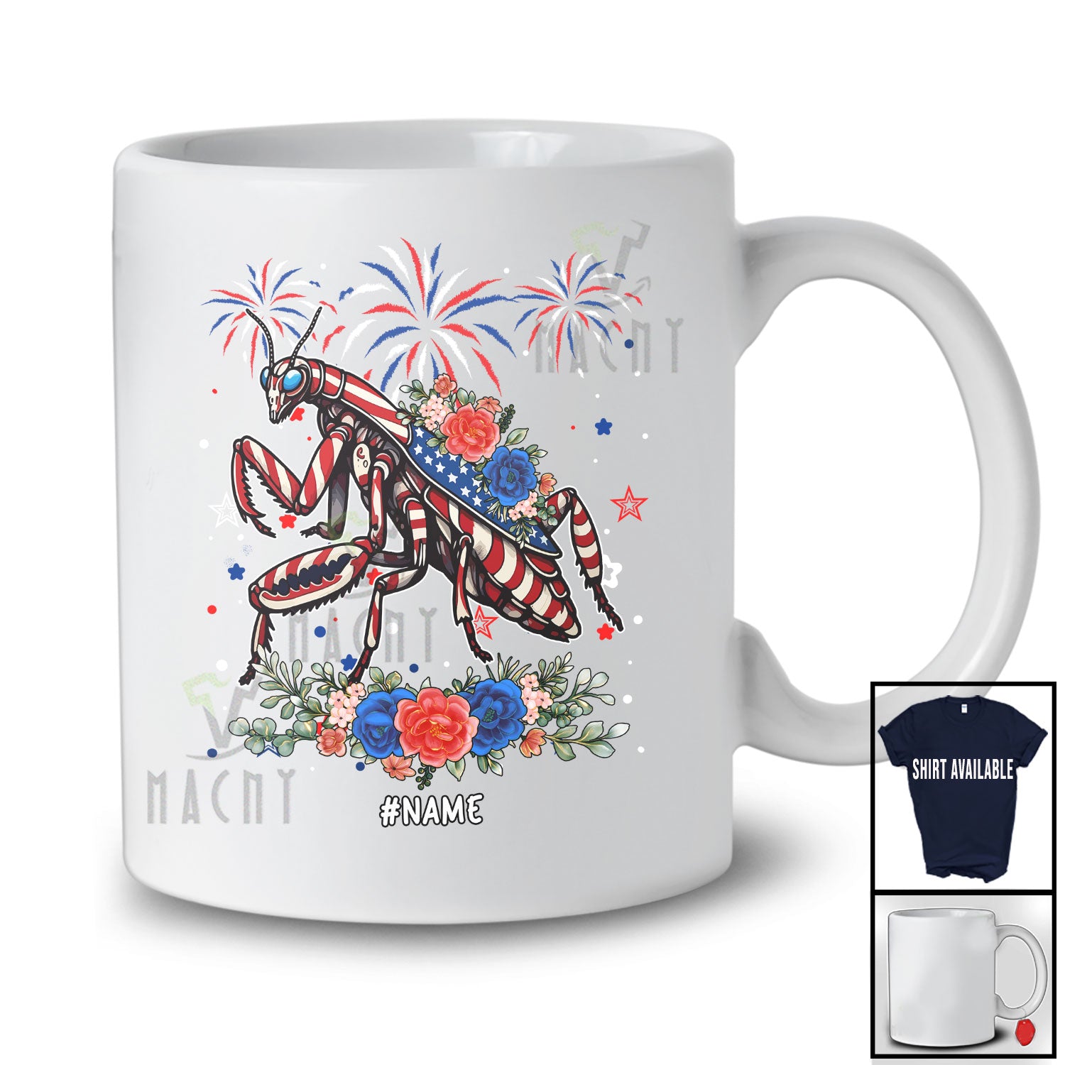 new MacnyStore - Personalized American Flag Mantis Flowers; Lovely 4th Of July Insect; Custom Name Patriotic T-Shirt – Macnystore