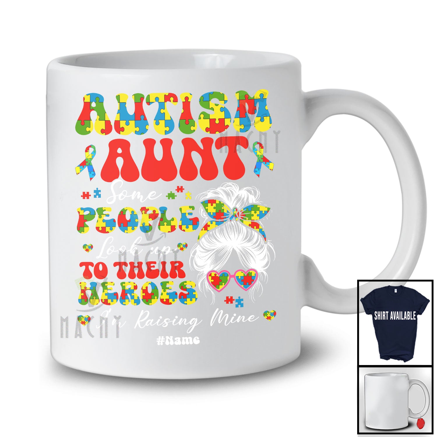 • The Personalized Autism Aunt Raising Hero; Amazing Custom Name Groovy Puzzle Messy Bun Hair T-Shirt is the yin, to your yang. You've found what you're looking for.