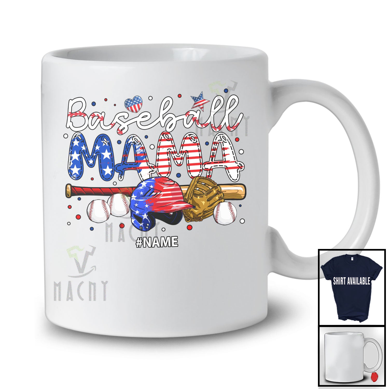 Personalized Baseball Mama; Awesome 4th Of July Custom Name Baseball Player; Patriotic Family T-Shirt. This cotton t-shirt is a durable staple product with a classic fit. One of the most popular items, it has a relaxed style made for everyday and casual wear.