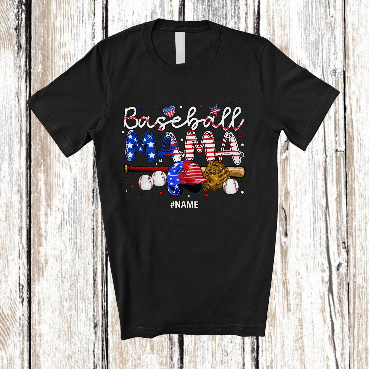 Personalized Baseball Mama; Awesome 4th Of July Custom Name Baseball Player; Patriotic Family T-Shirt