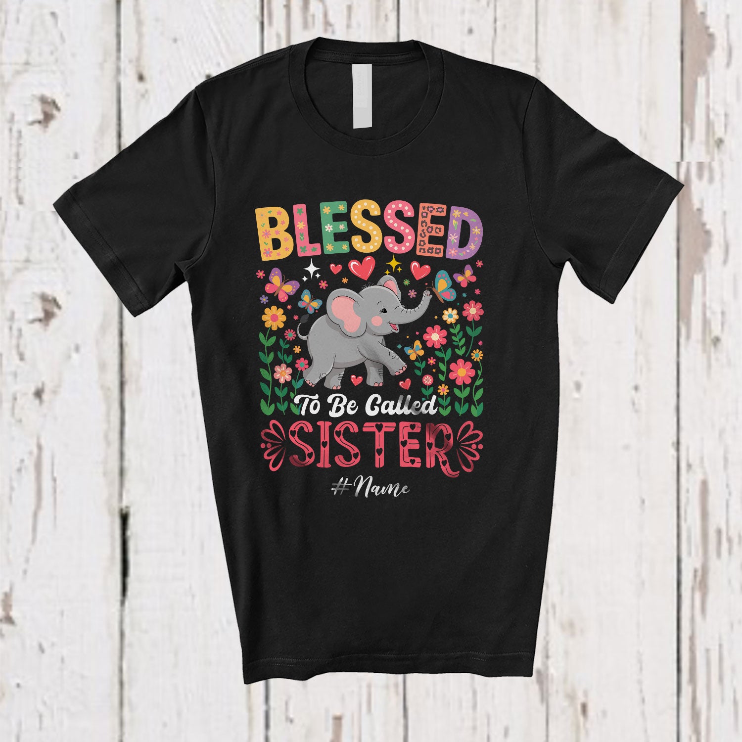 Personalized Blessed To Be Called Sister; Proud Mother's Day Floral Custom Name Sister Elephant T-Shirt