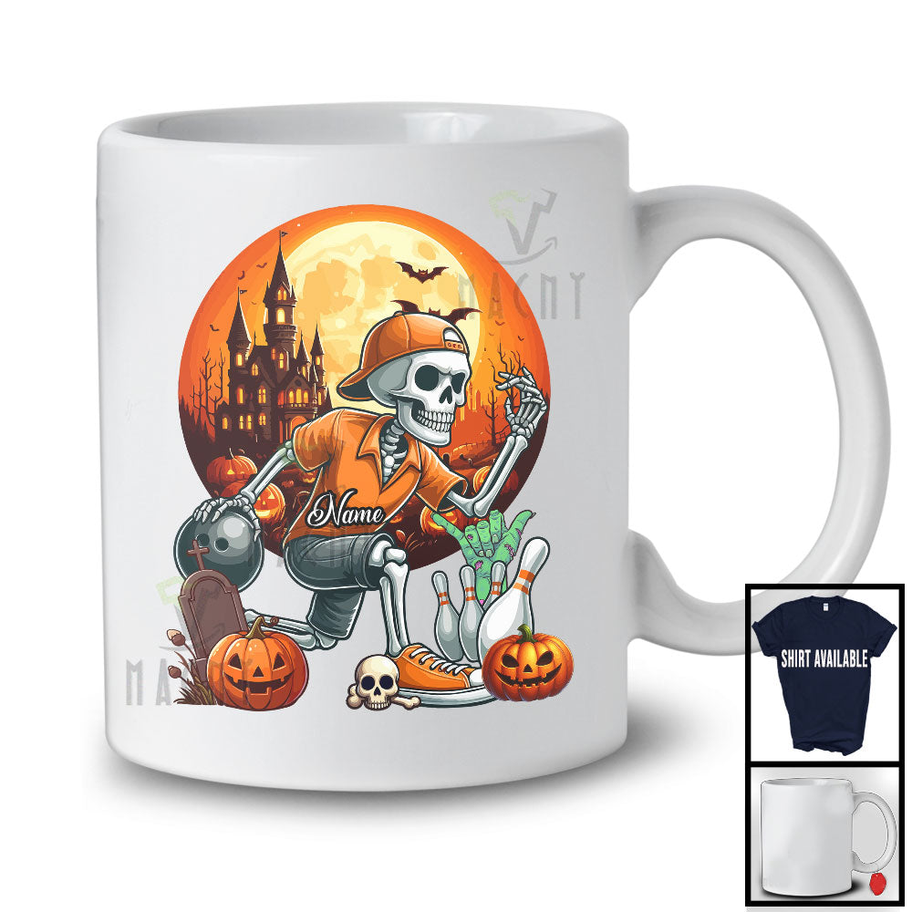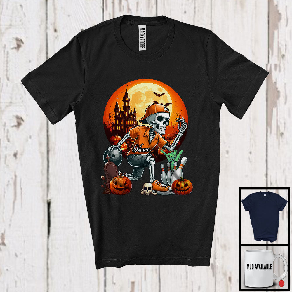 new MacnyStore - Personalized Bowling Skeleton Custom Name Player; Joyful Halloween Moon Sport Team T-Shirt – Macnystore
