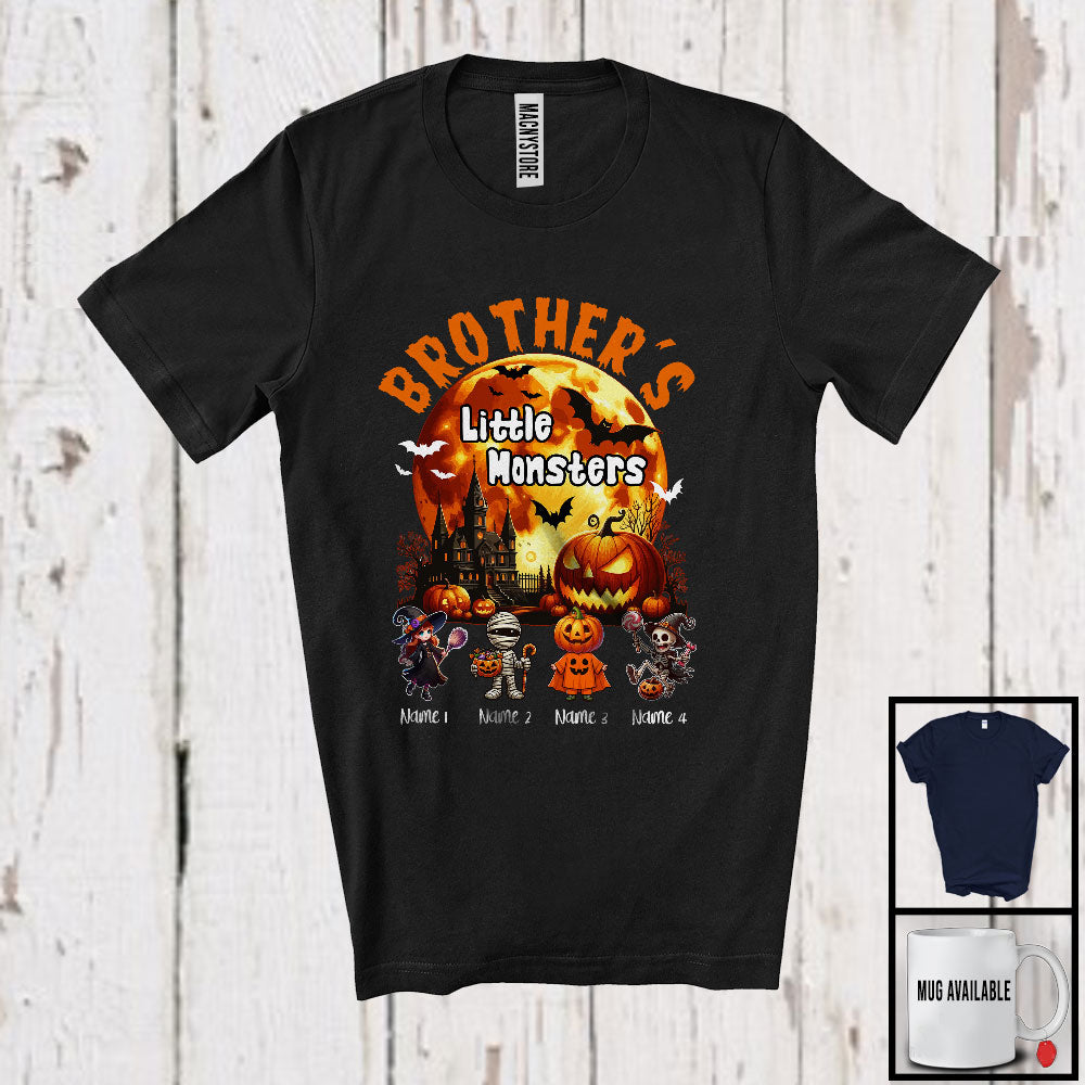 Personalized Brother's Little Monsters, Creepy Halloween Moon Pumpkin, Custom Name Family T-Shirt