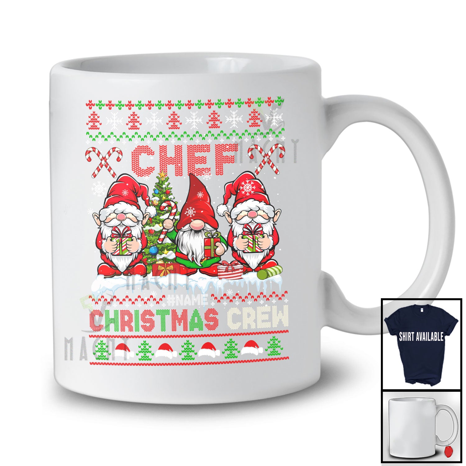 Personalized Chef Christmas Crew; Adorable X-mas Sweater Three Gnomes Gnomies; Jobs Family T-Shirt. This cotton t-shirt is a durable staple product with a classic fit. One of the most popular items, it has a relaxed style made for everyday and casual wear.