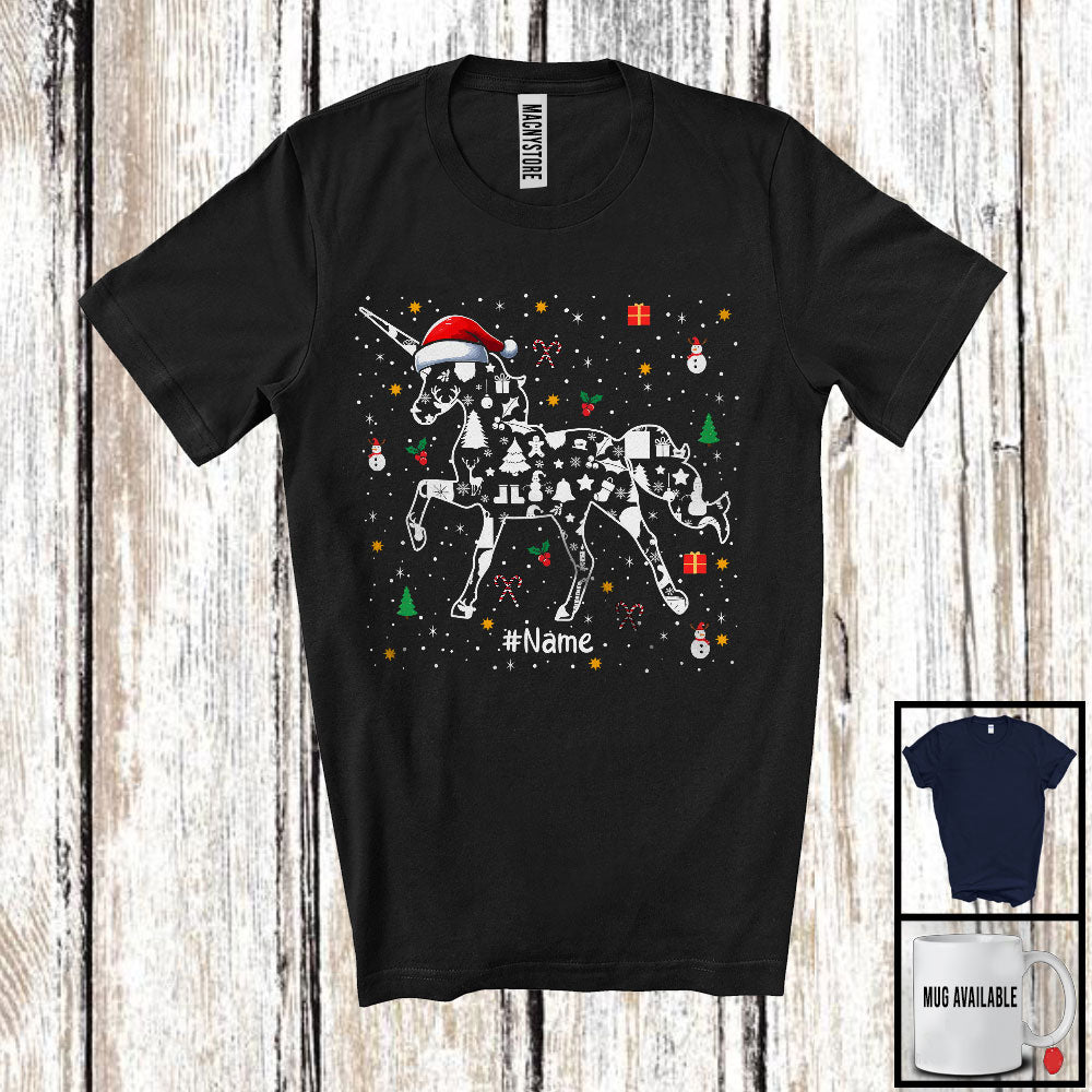 Personalized Christmas Santa Unicorn Paws Shape; Cheerful X-mas Custom Name Unicorn; Family T-Shirt