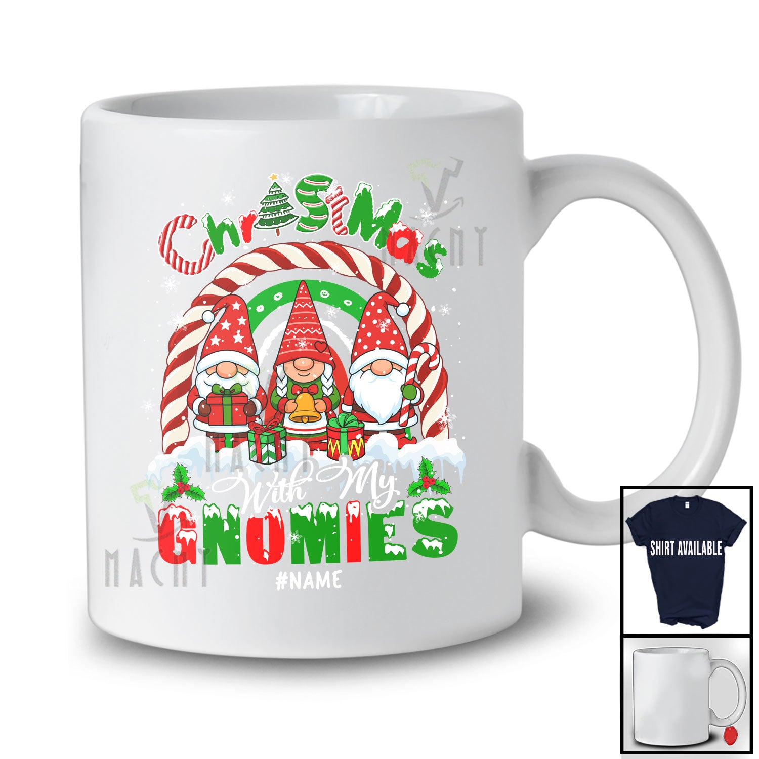This Personalized Christmas With My Gnomies; Lovely Custom Name Rainbow Snowing Three Gnomes T-Shirt is great idea gift for your family, friends in this birthday, christmas, mother's day, father's day, patrick's day or any holiday.