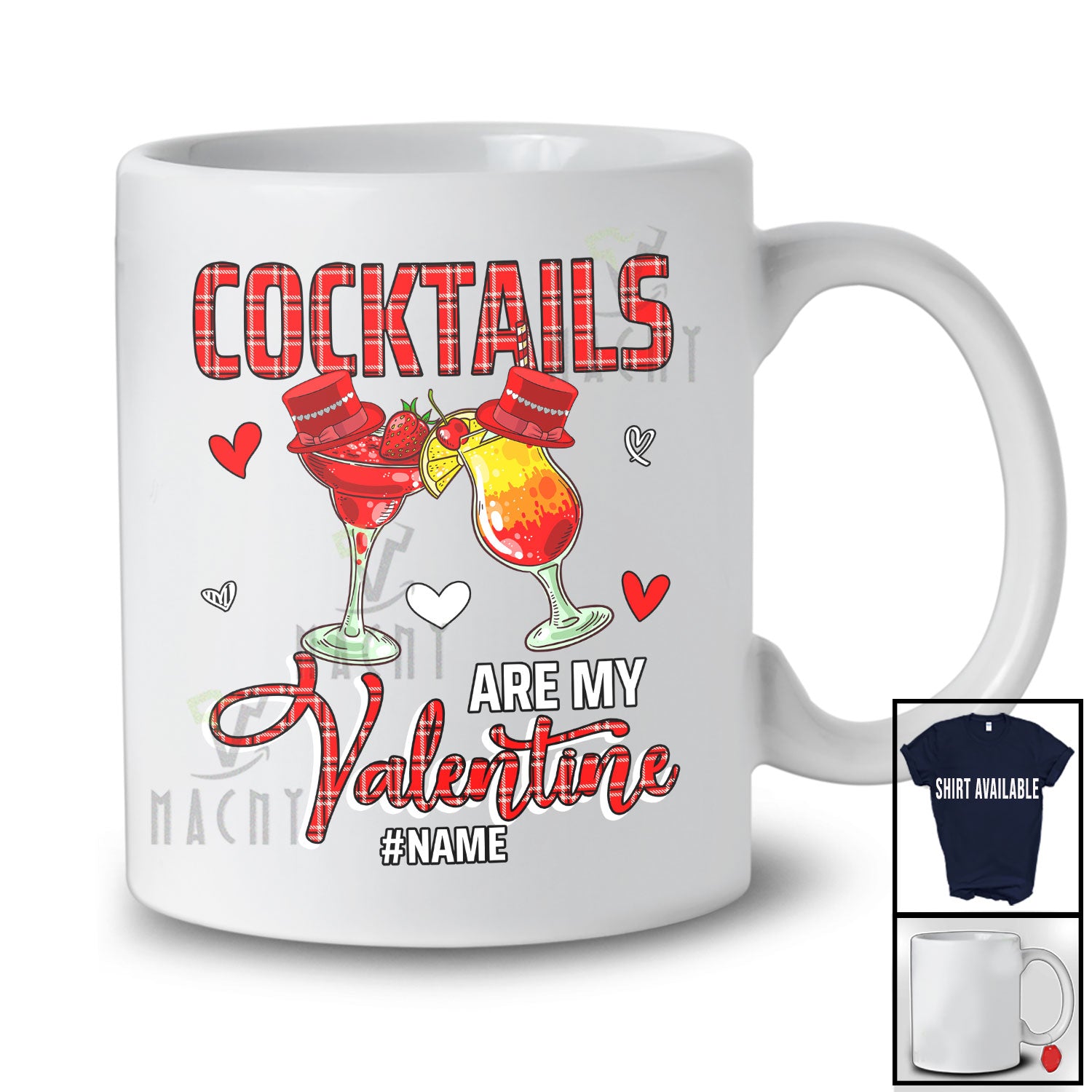 Personalized Cocktails Are My Valentine; Amazing Plaid Custom Name Couple Cocktail; Drinking Drunker T-Shirt. This cotton t-shirt is a durable staple product with a classic fit. One of the most popular items, it has a relaxed style made for everyday and casual wear.