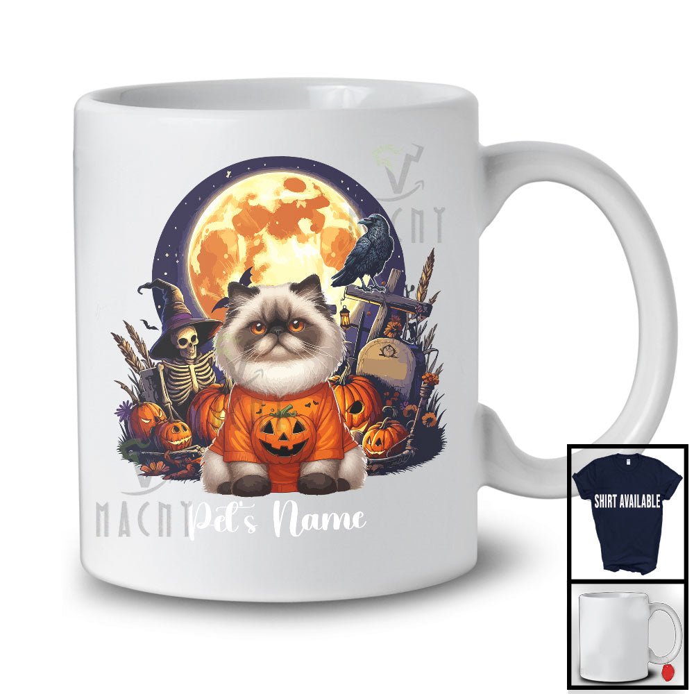 Personalized Custom Kitten's Name Himalayan Cat, Lovely Halloween Skeleton Pumpkins T-Shirt