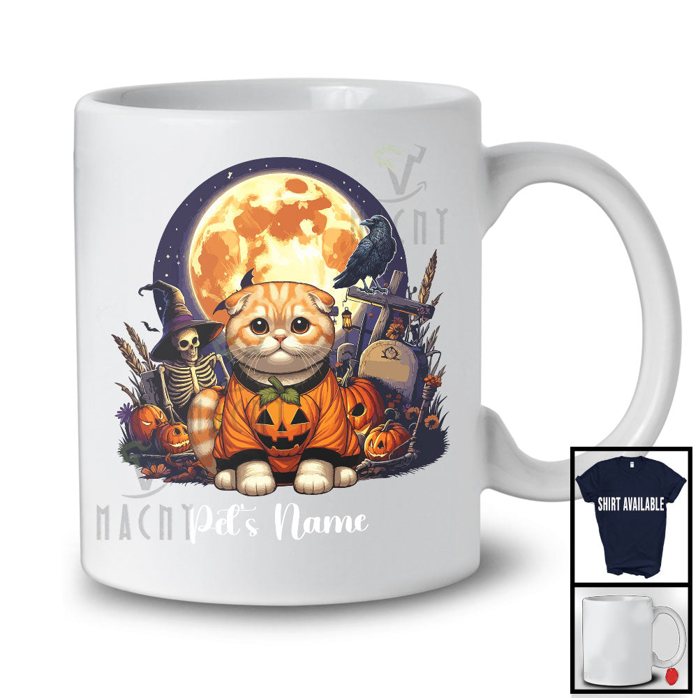 Personalized Custom Kitten's Name Scottish Fold Cat, Lovely Halloween Skeleton Pumpkins T-Shirt