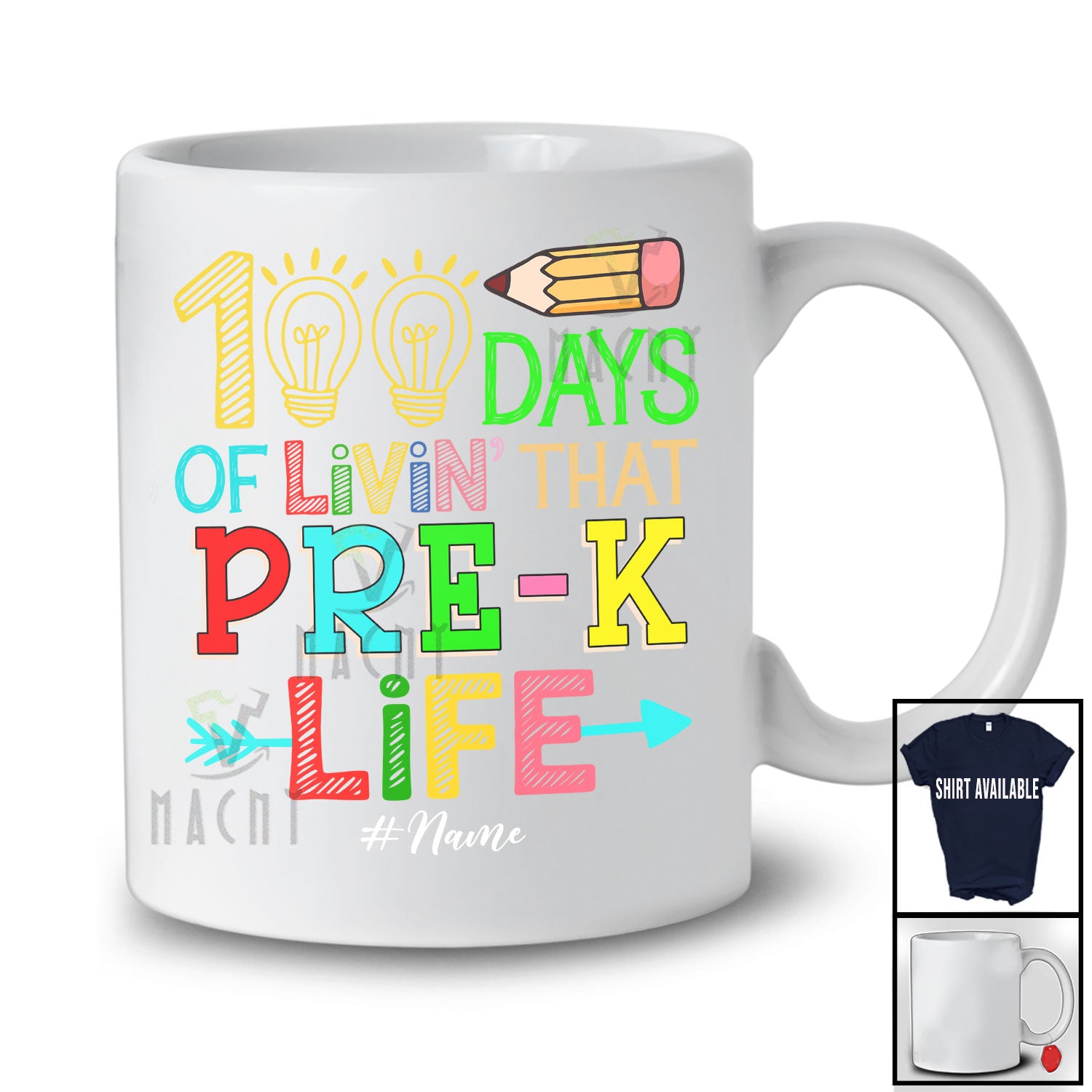 new MacnyStore - Personalized Custom Name 100 Days of Livin' Pre-K Life; Lovely 100th Day Of School Lights Bright T-Shirt – Macnystore