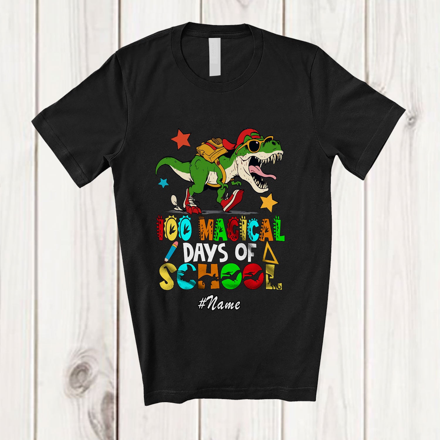 • The Personalized Custom Name 100 Magical Days Of School; Lovely 100th Day Boys T-Rex Dinosaur T-Shirt was built with people like you in mind. Something to keep you happy. Every. Single. Day.