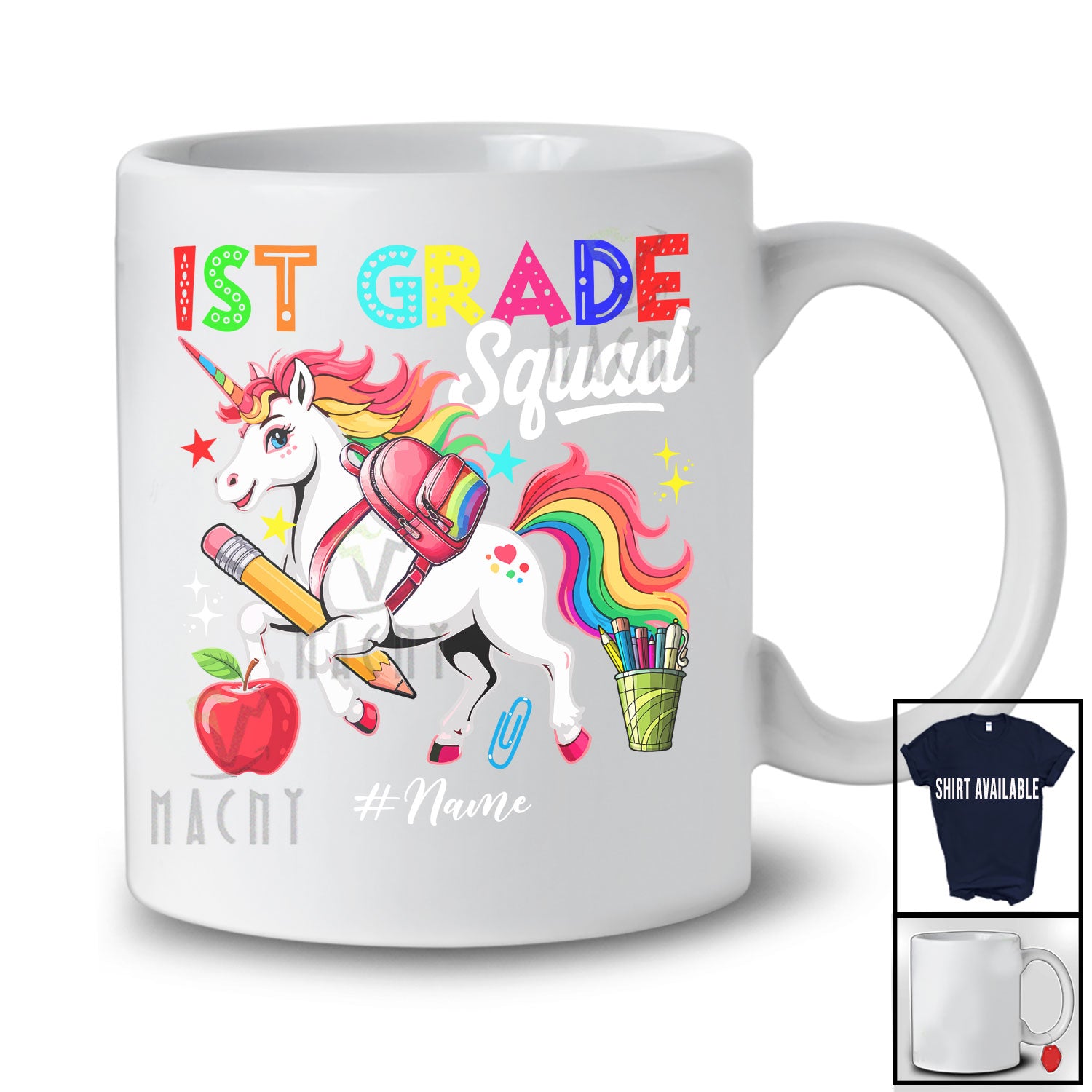 • Personalized Custom Name 1st Grade Squad; Lovely First Day Of School Student Teacher Unicorn T-Shirt. This cotton t-shirt is a durable staple product with a classic fit. One of the most popular items, it has a relaxed style made for everyday and casual wear.
