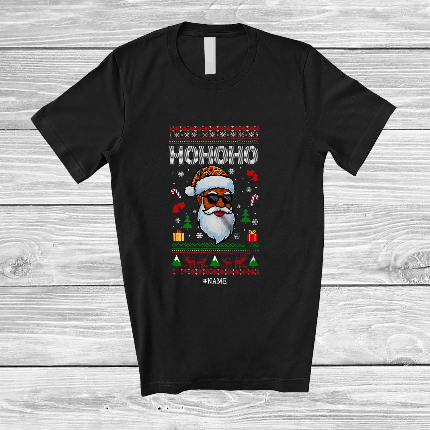 Personalized Custom Name 3Ho; Awesome Christmas Sweater Black Afro African Santa Face T-Shirt