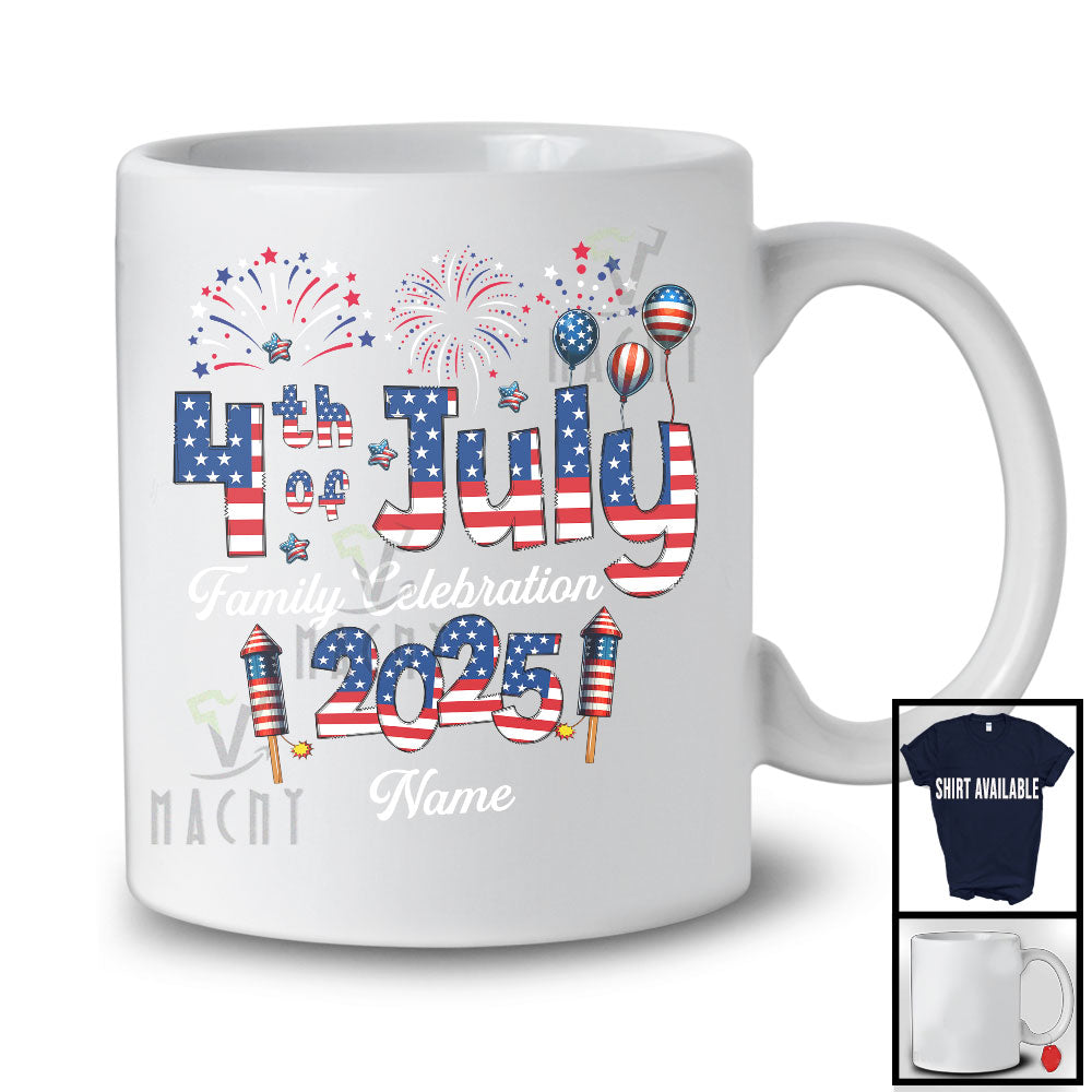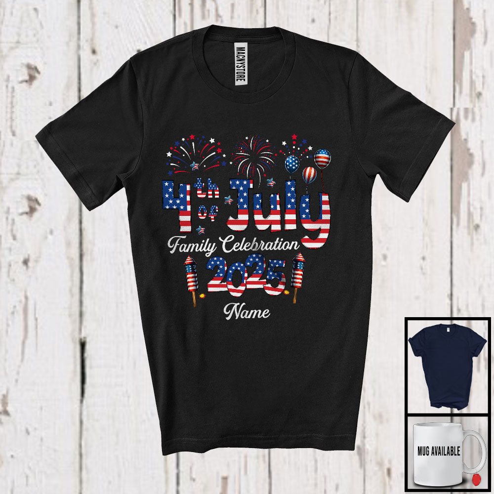 This Personalized Custom Name 4th Of July Family Celebration 2025, Proud US Flag Family, Patriotic T-Shirt is great idea gift for your family, friends in this birthday, christmas, mother's day, father's day, patrick's day or any holiday.