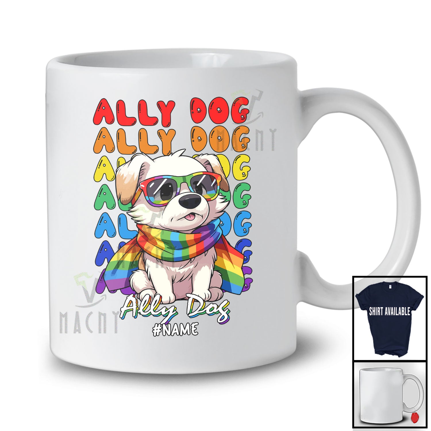 The Personalized Custom Name Ally Dog; Adorable LGBTQ Pride Gay Dog Sunglasses; Family T-Shirt destined to impress, and priced at only $12.95, for a limited time.