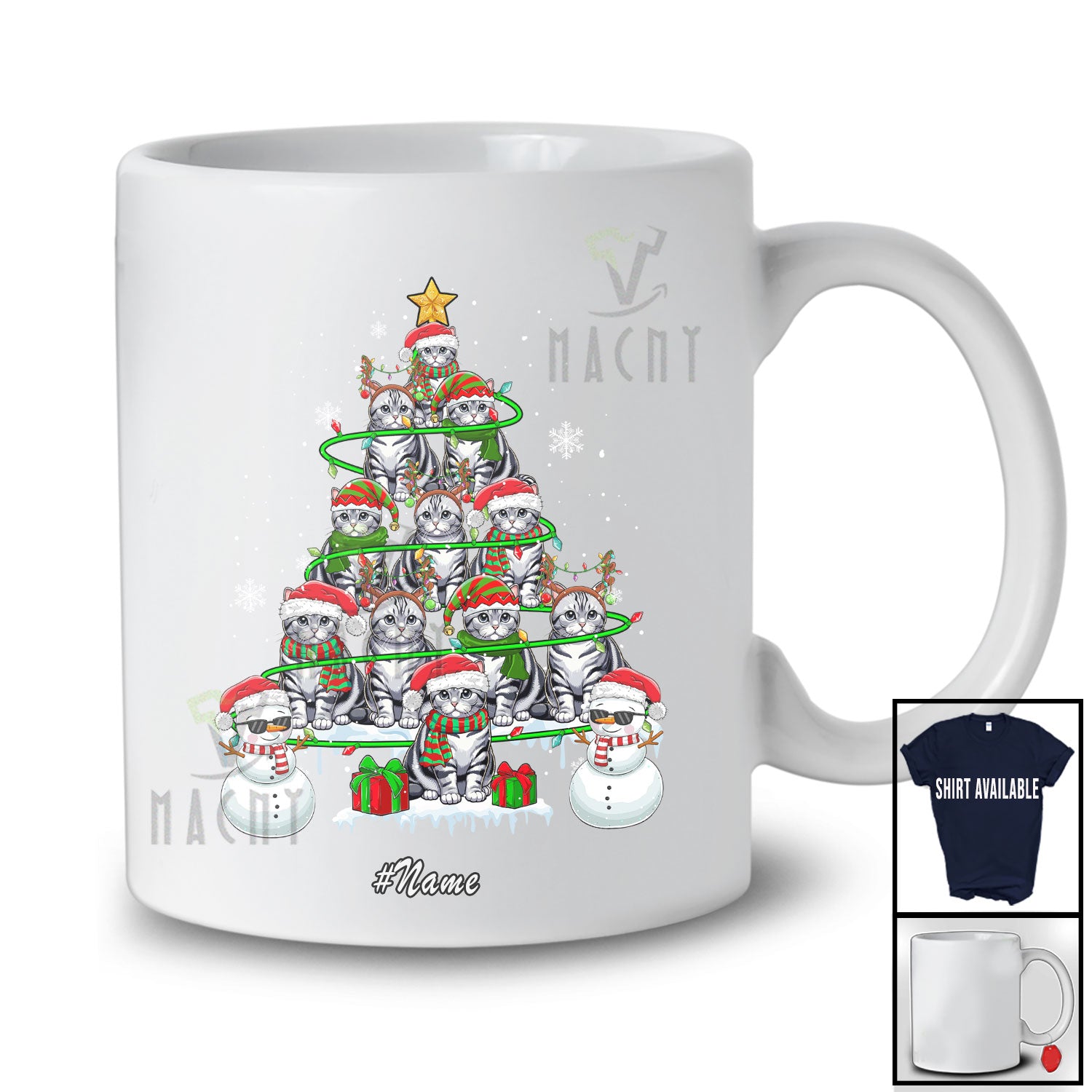 Personalized Custom Name American Shorthair Christmas Tree; Lovely X-mas Snowman Family T-Shirt. This cotton t-shirt is a durable staple product with a classic fit. One of the most popular items, it has a relaxed style made for everyday and casual wear.