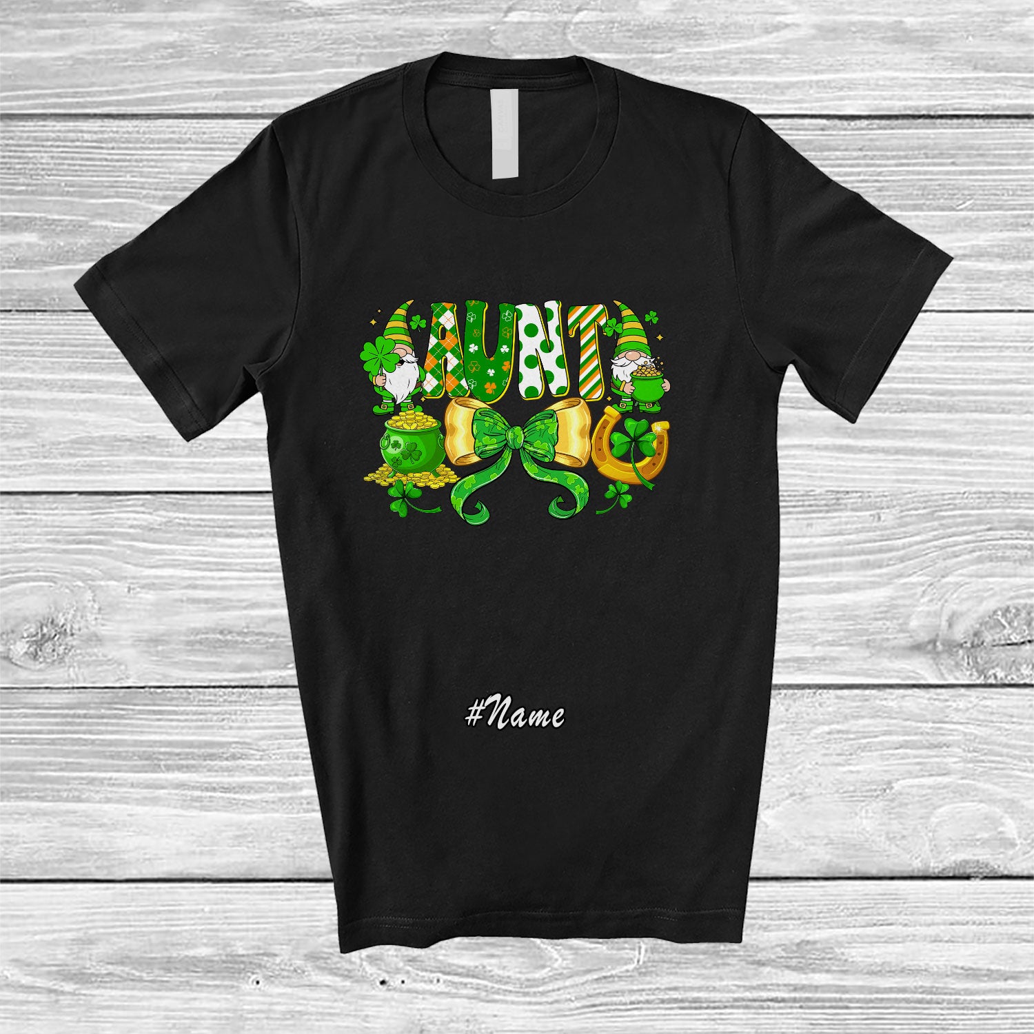 The Personalized Custom Name Aunt; Lovely St. Patrick's Day Bow Tie Gnomes Shamrock; Irish Family T-Shirt is far and away, one of our most popular items. People can't seem to get enough of it.