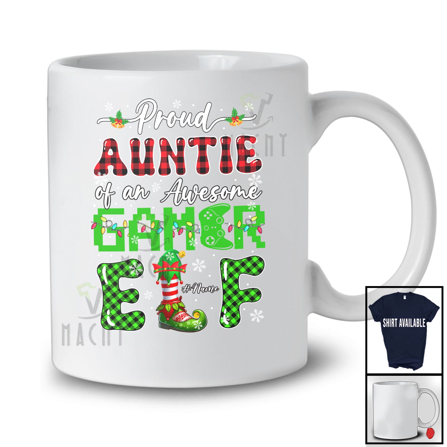 This Personalized Custom Name Auntie Of An Awesome Gamer Elf; Proud Mother's Day Christmas Plaid T-Shirt is great idea gift for your family, friends in this birthday, christmas, mother's day, father's day, patrick's day or any holiday.