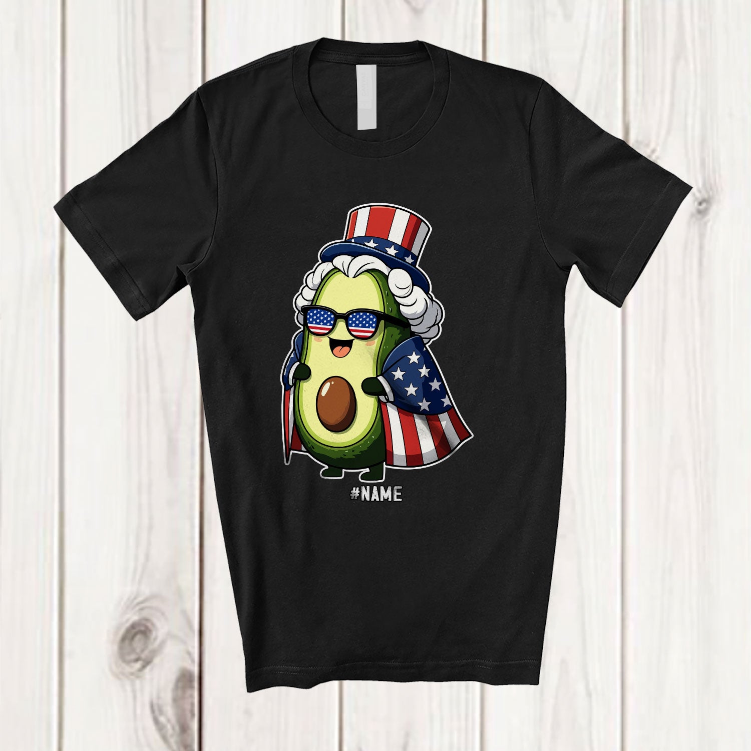 Personalized Custom Name Avocado American Flag Cape; Amazing 4th Of July Fruit Vegan Patriotic T-Shirt