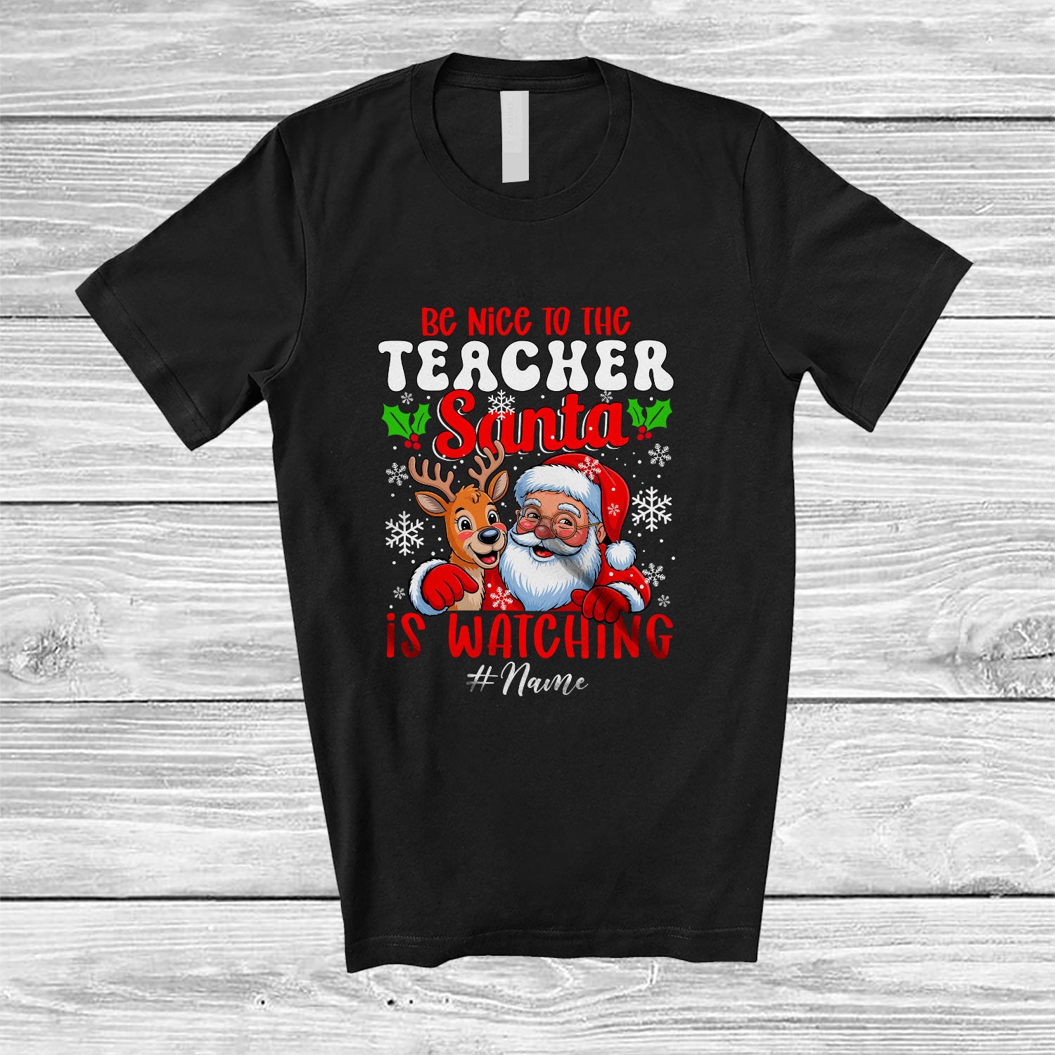 Personalized Custom Name Be Nice To Teacher; Joyful Christmas Santa Reindeer; Women Jobs T-Shirt