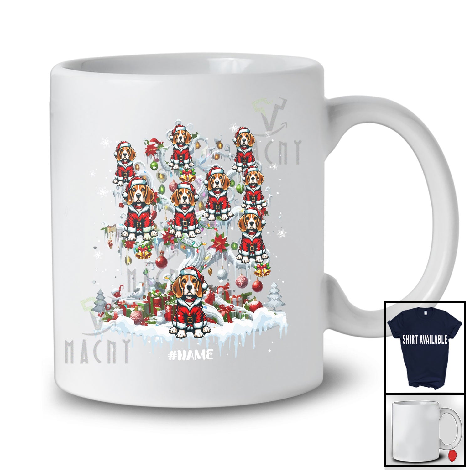new MacnyStore - Personalized Custom Name Beagle Santa On Christmas Tree Snow; Lovely Winter Family T-Shirt – Macnystore