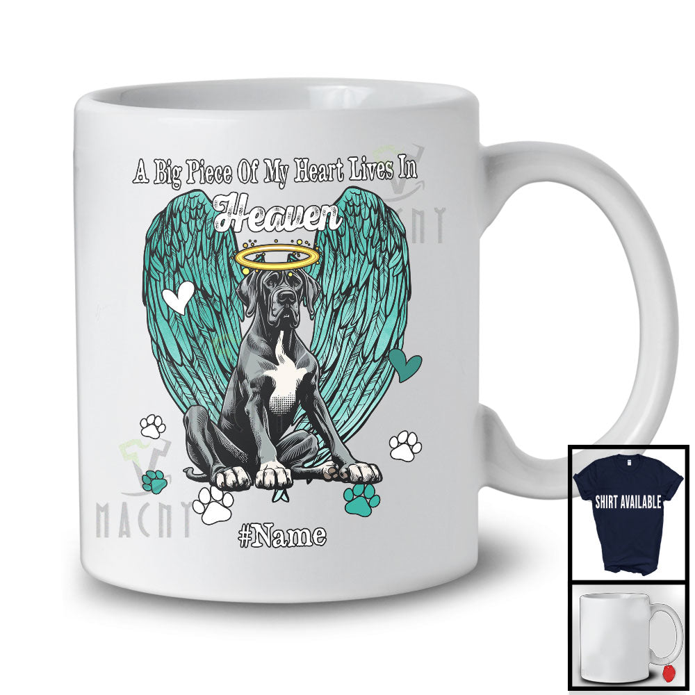 • Personalized Custom Name Big Piece Of Heart In Heaven, Lovely Memories Great Dane Lover T-Shirt. This cotton t-shirt is a durable staple product with a classic fit. One of the most popular items, it has a relaxed style made for everyday and casual wear.