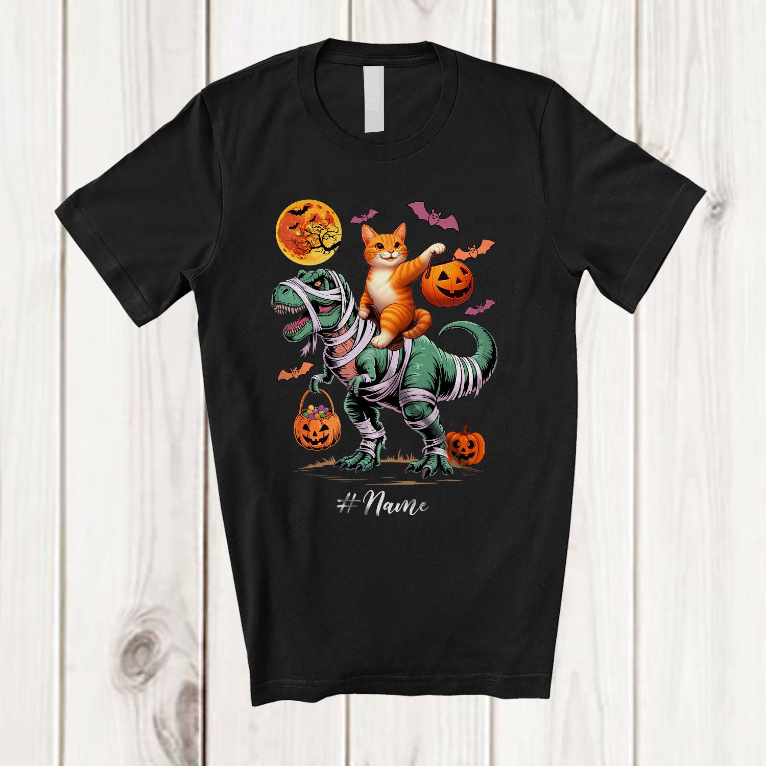 new MacnyStore - Personalized Custom Name Cat Riding T-Rex Mummy; Scary Halloween Dinosaur Cosplay; Family T-Shirt – Macnystore