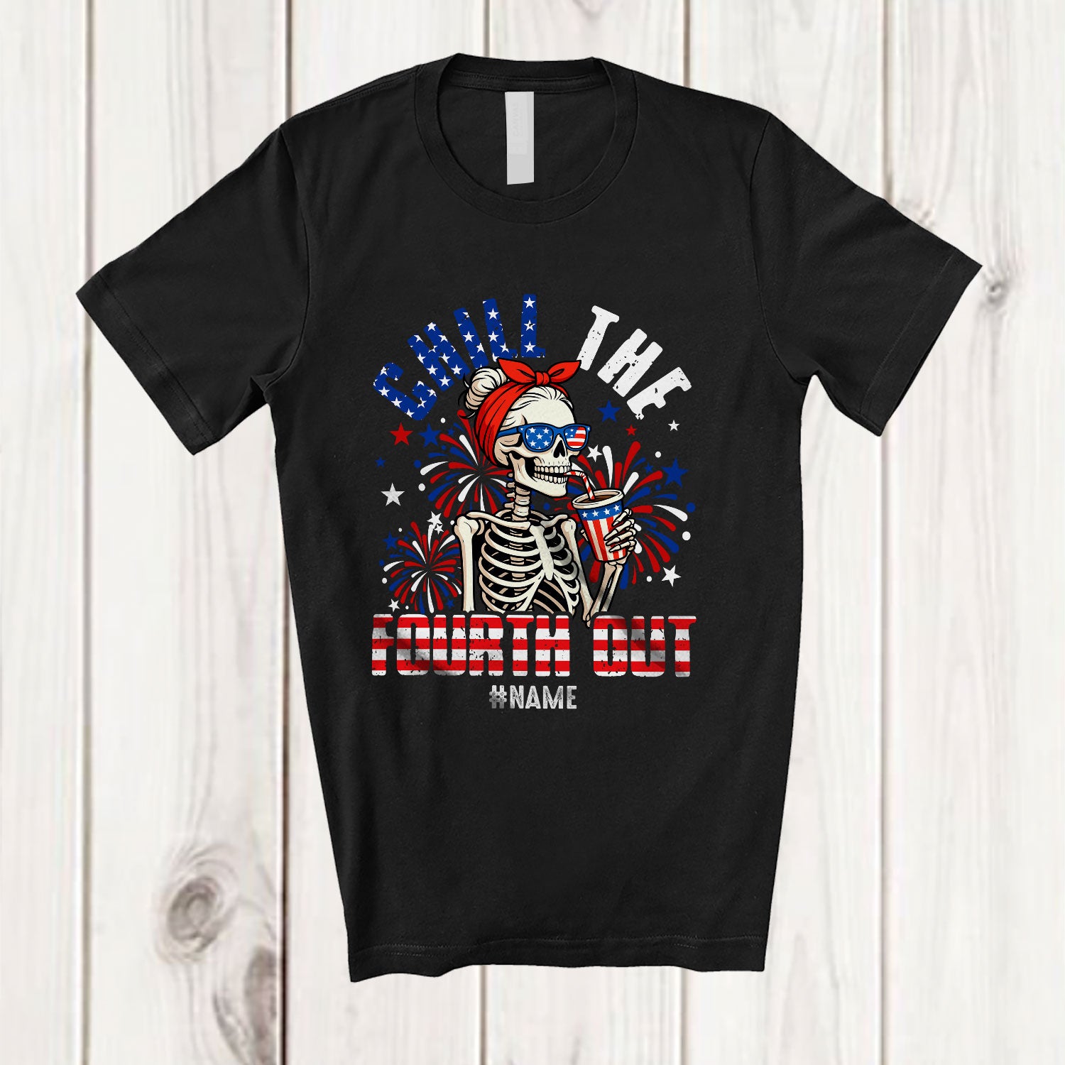 Personalized Custom Name Chill The Fourth Out; Humorous 4th Of July Skeleton Drinking; Patriotic T-Shirt