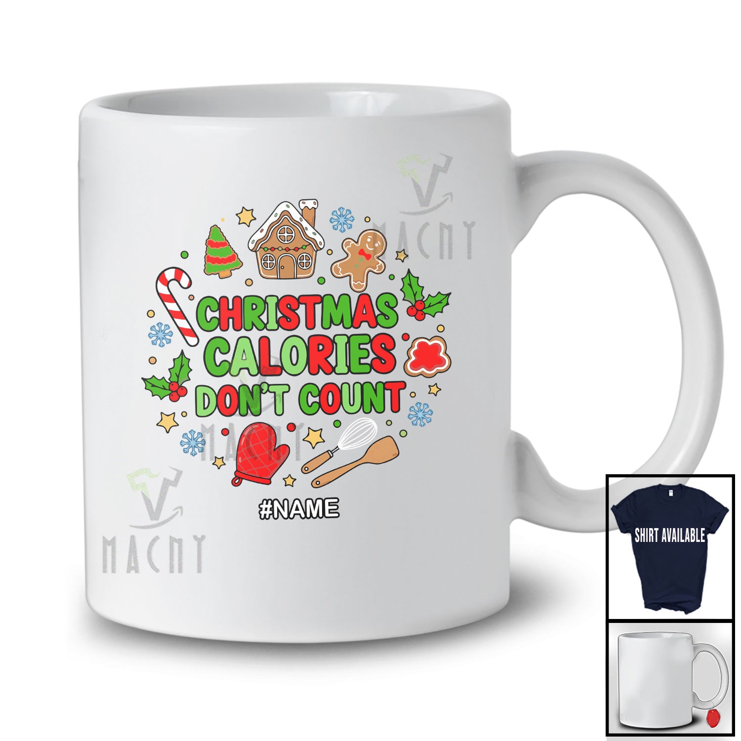 Personalized Custom Name Christmas Calories Don't Count; Humorous X-mas Baking Baker Family T-Shirt. This cotton t-shirt is a durable staple product with a classic fit. One of the most popular items, it has a relaxed style made for everyday and casual wear.
