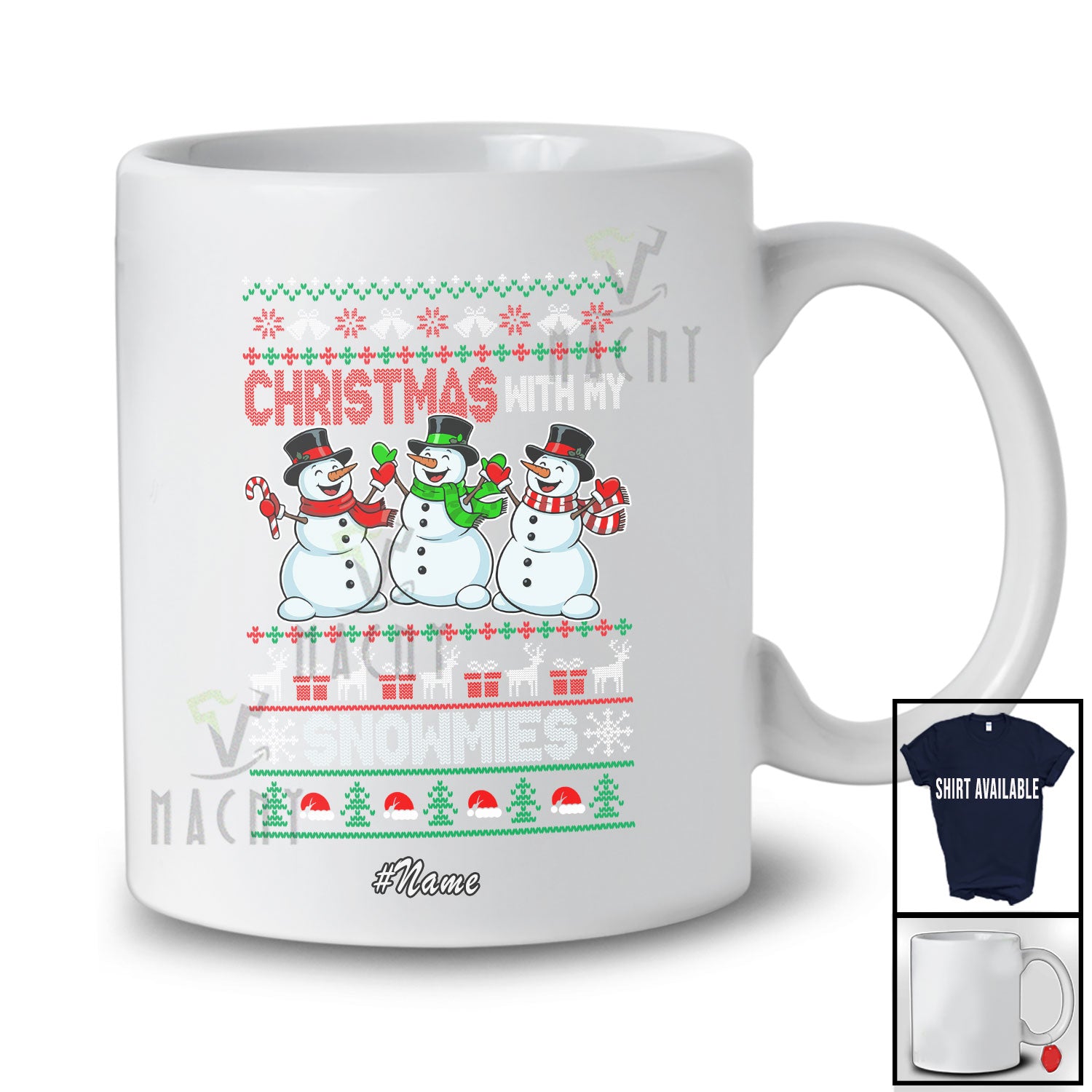 Personalized Custom Name Christmas With Snowmies; Humor Christmas Sweater Three Snowman T-Shirt