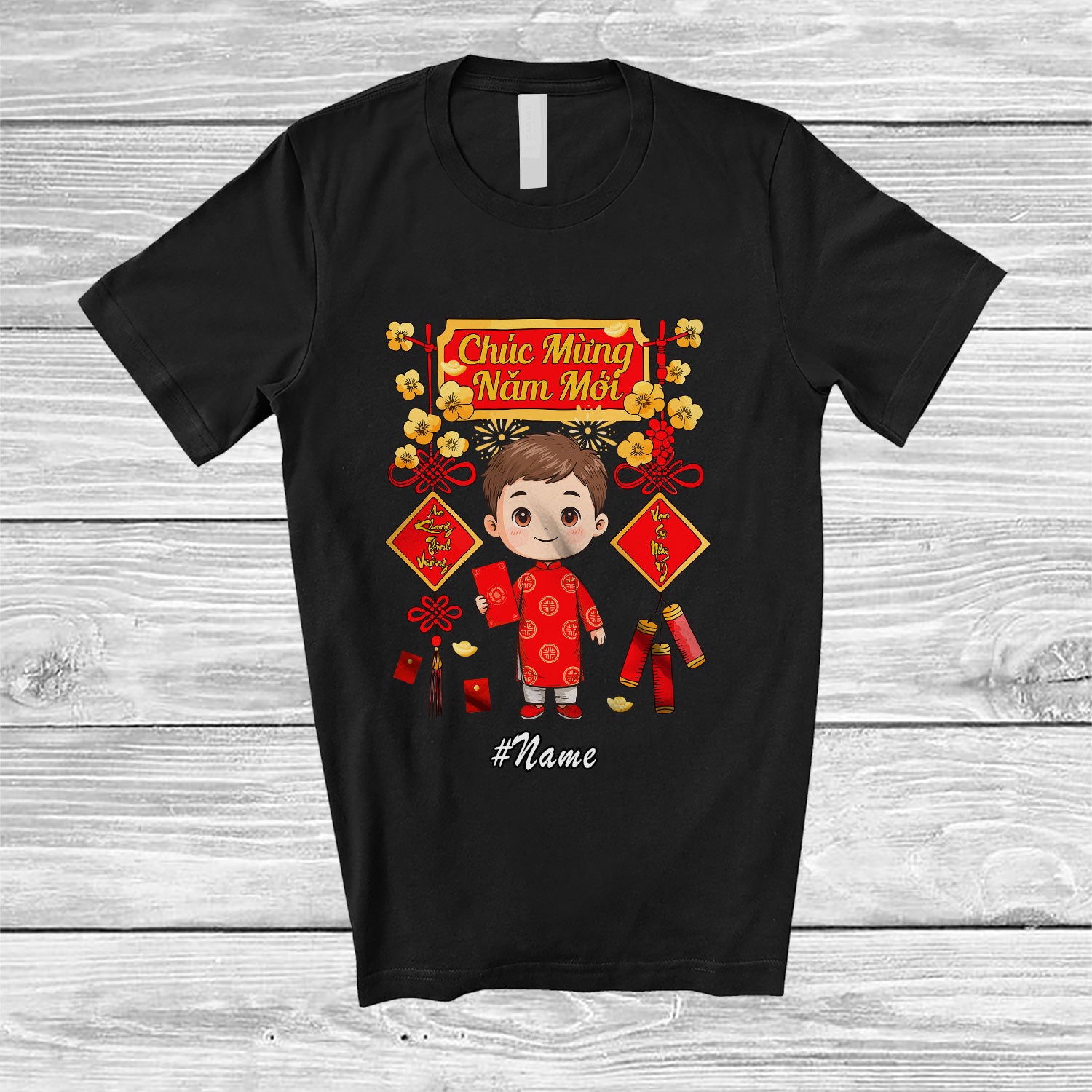 Personalized Custom Name Chuc Mung Nam Moi; Lovely Lunar New Year Boy Vietnamese Ao Dai T-Shirt