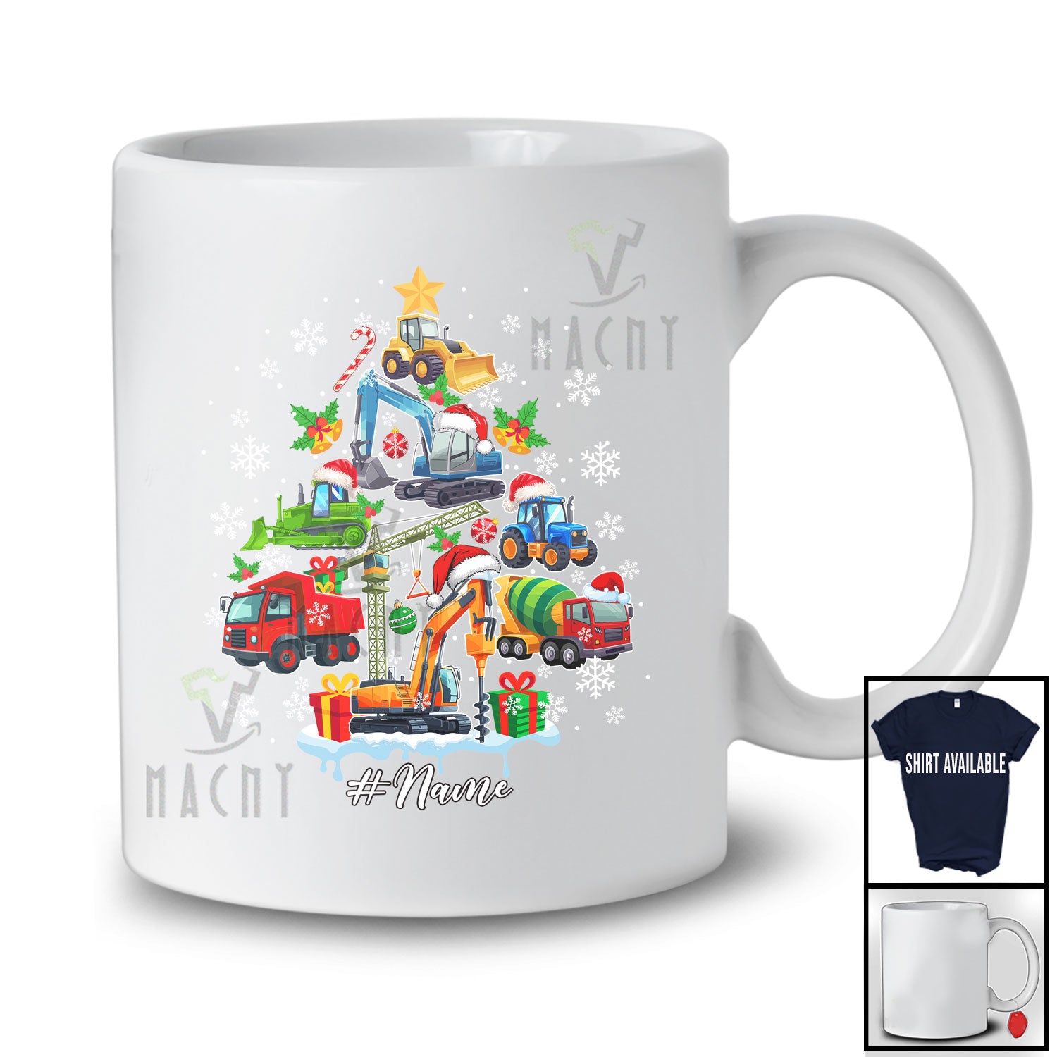Personalized Custom Name Construction Vehicles Santa Christmas Tree; Joyful Driver Boys Family T-Shirt