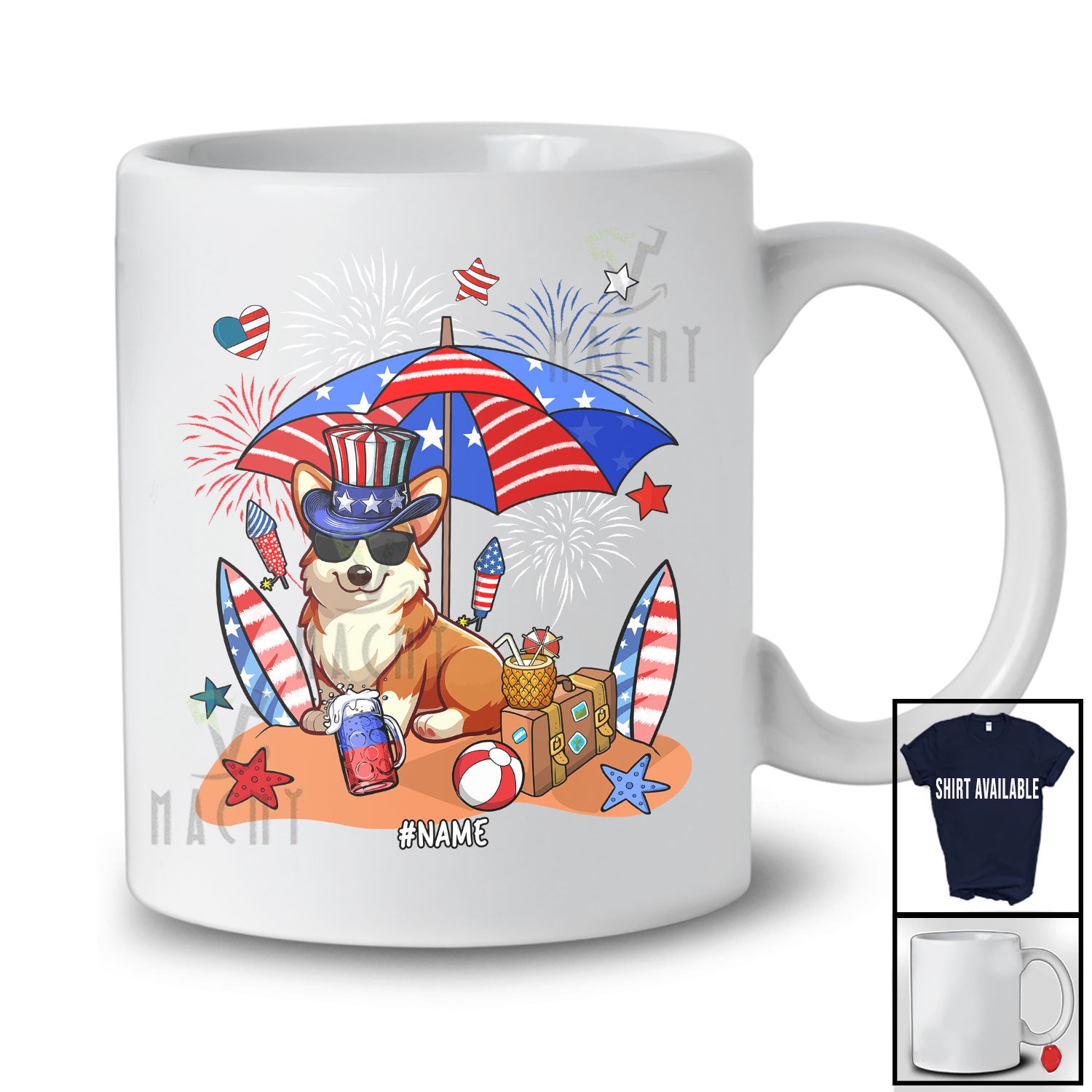 • Personalized Custom Name Corgi Relax Wait For 4th of July; Lovely US Flag Patriotic T-Shirt. This cotton t-shirt is a durable staple product with a classic fit. One of the most popular items, it has a relaxed style made for everyday and casual wear.