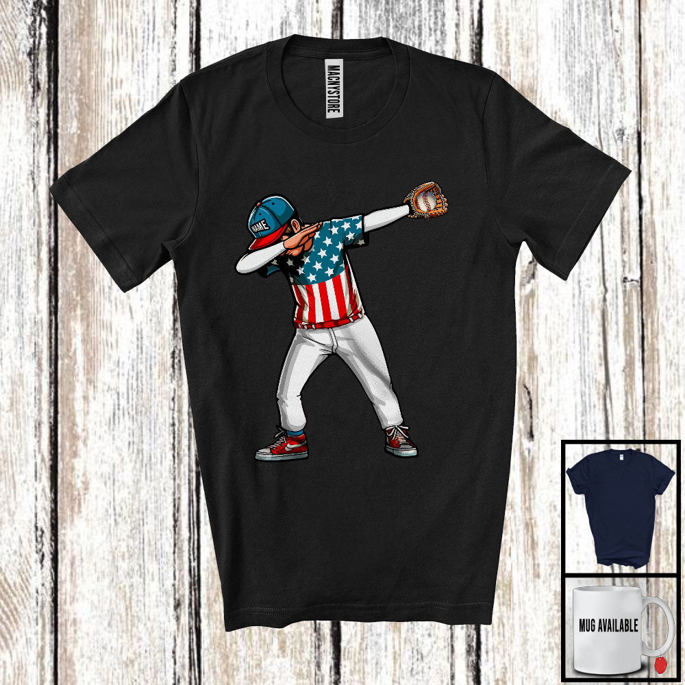Personalized Custom Name Dabbing Men Playing Baseball, Proud 4th Of July Baseball, Patriotic T-Shirt
