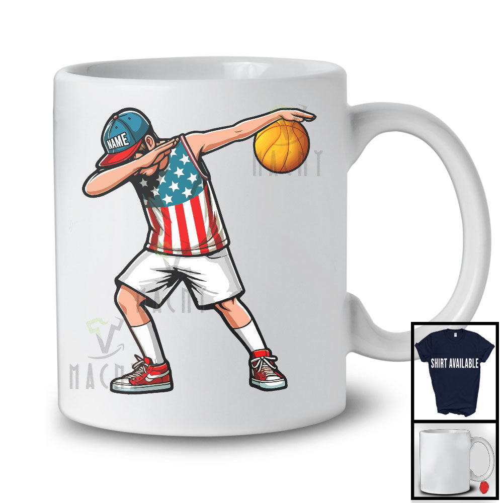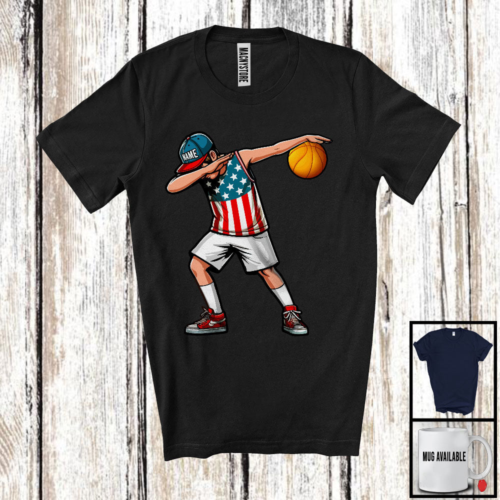 Personalized Custom Name Dabbing Men Playing Basketball, Proud 4th Of July Sport, Patriotic T-Shirt