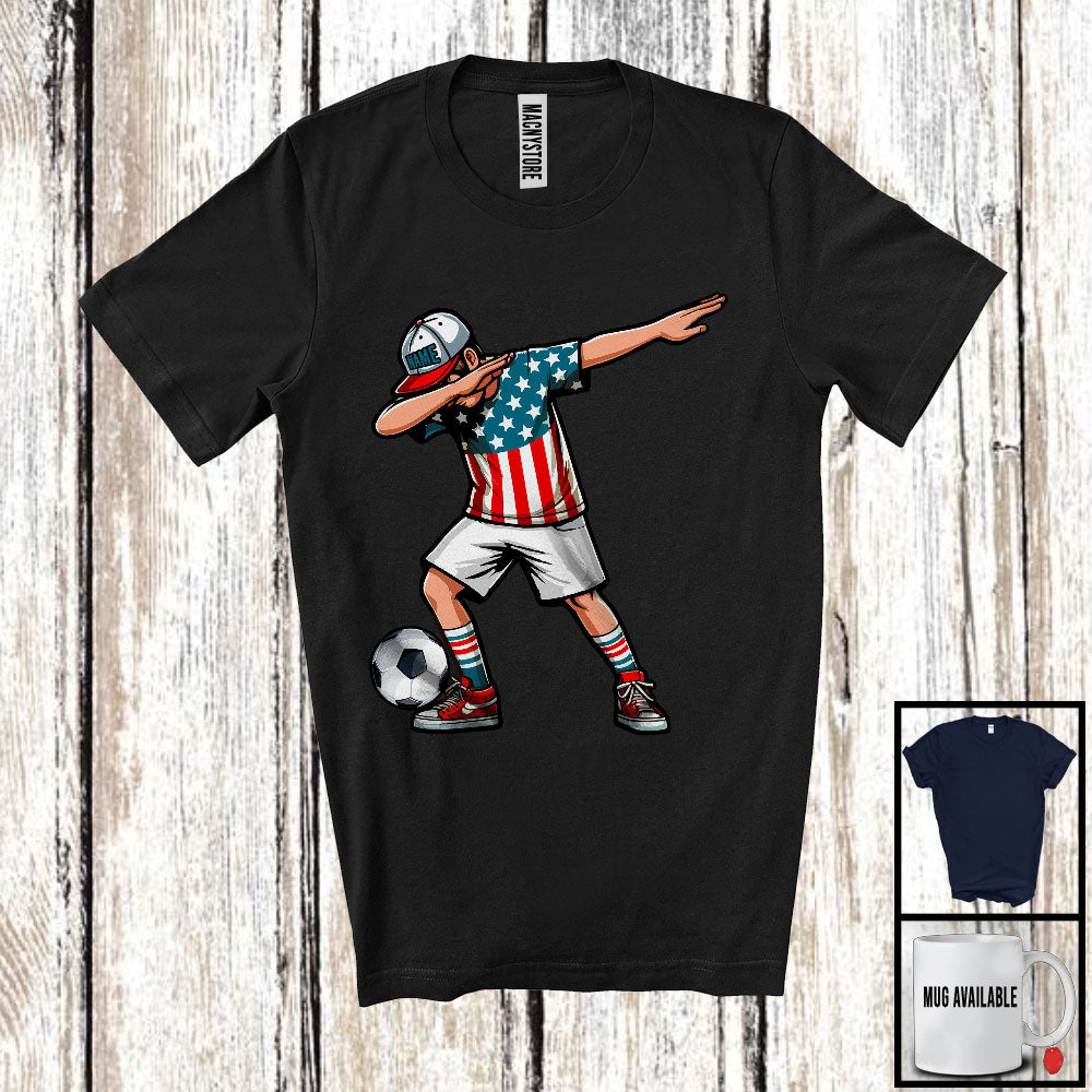 Personalized Custom Name Dabbing Men Playing Soccer, Proud 4th Of July Soccer, Patriotic T-Shirt