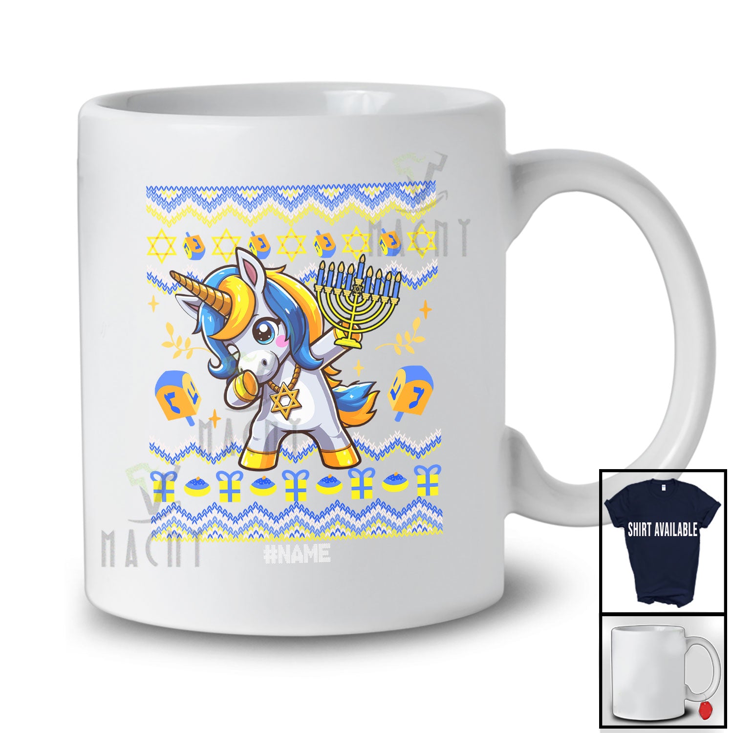 • Every product is unique, just like you. If you're looking for a product that fits the mold of your life, the Personalized Custom Name Dabbing Unicorn With Menorah; Joyful Hanukkah Sweater Family T-Shirt is for you.